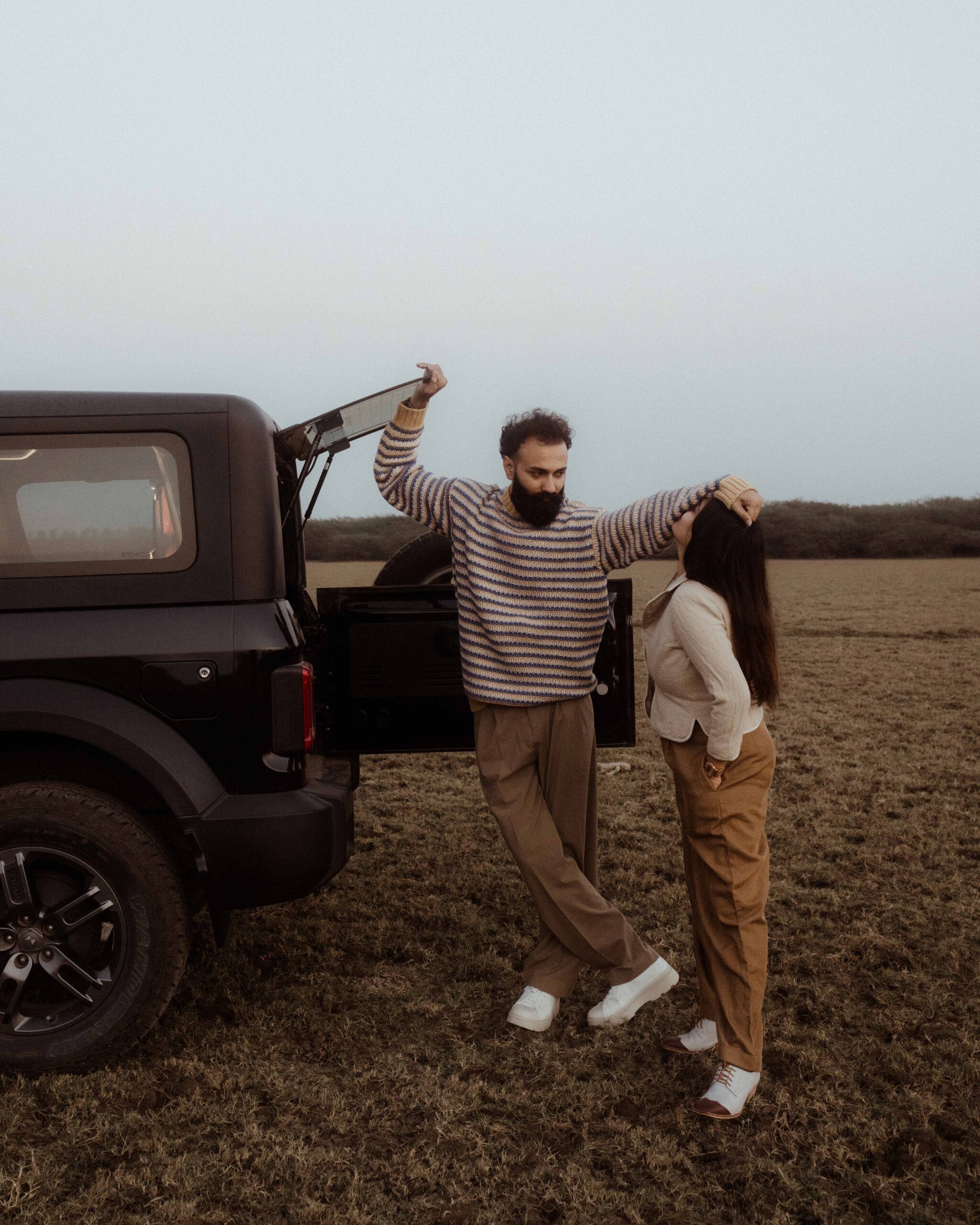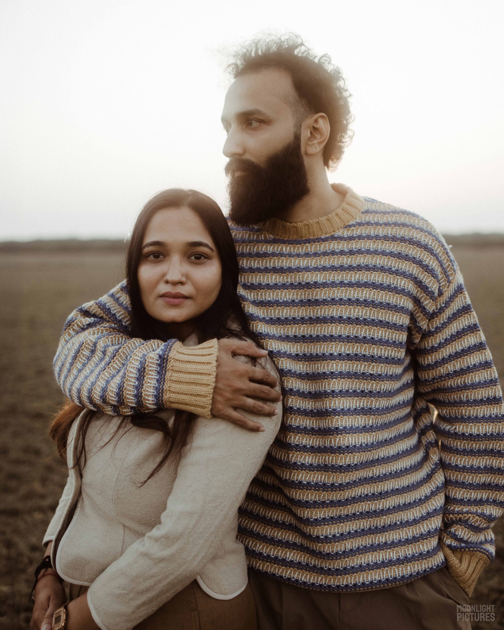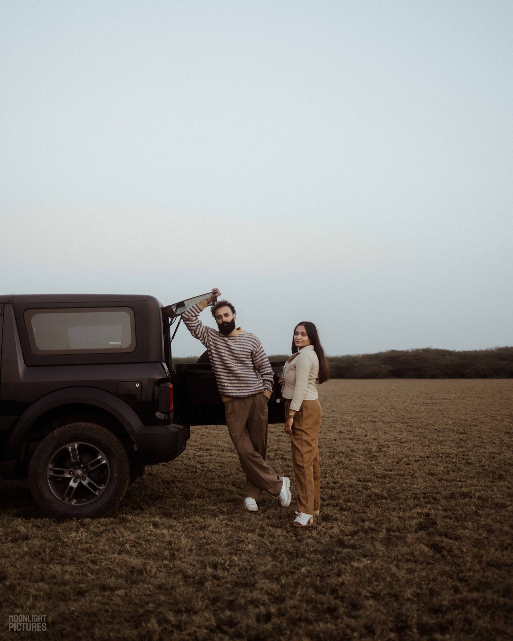 Their style perfectly mirrors their bond, subtle, earthy, and timeless. Kinjal’s soft grace blends seamlessly with Gaurav’s quiet strength, and together they create a harmony that feels cinematic yet unposed. The muted tones of their outfits, the warmth of their presence, and the ease in their togetherness make their love story feel like poetry captured in frames.