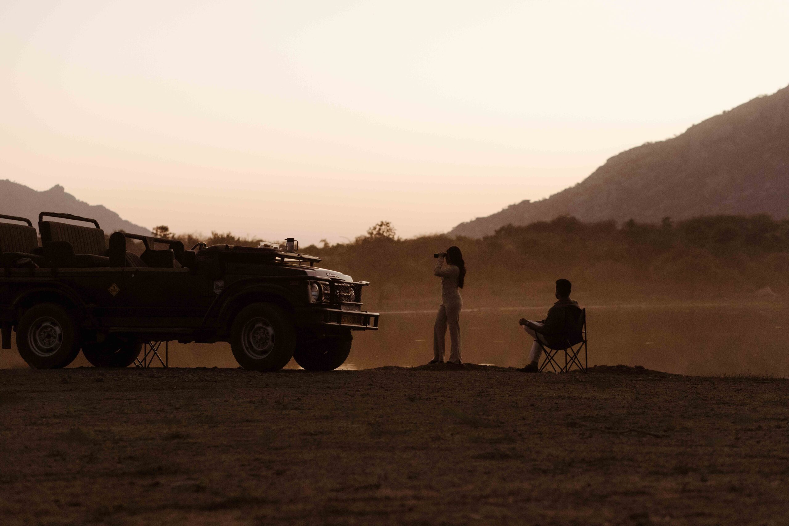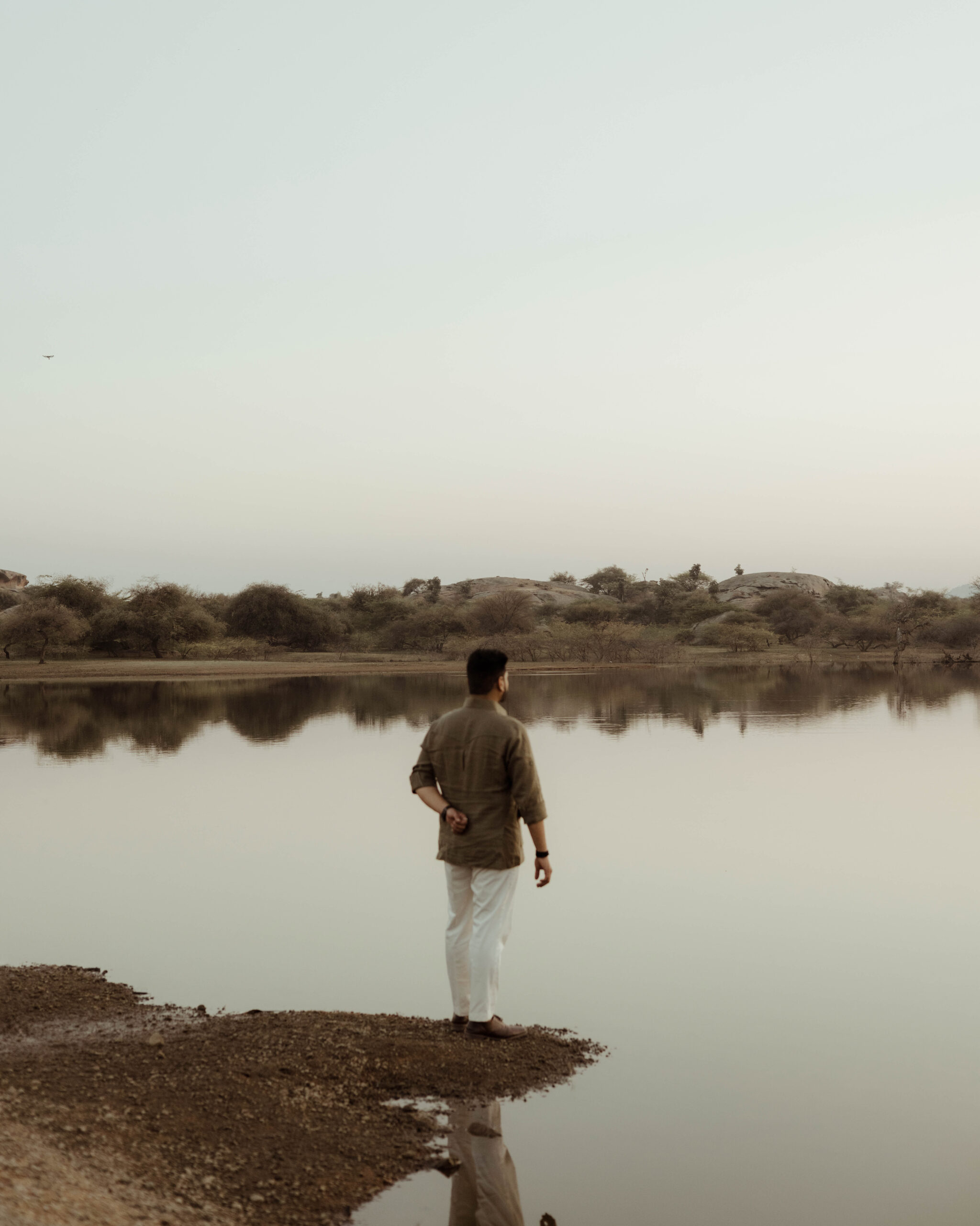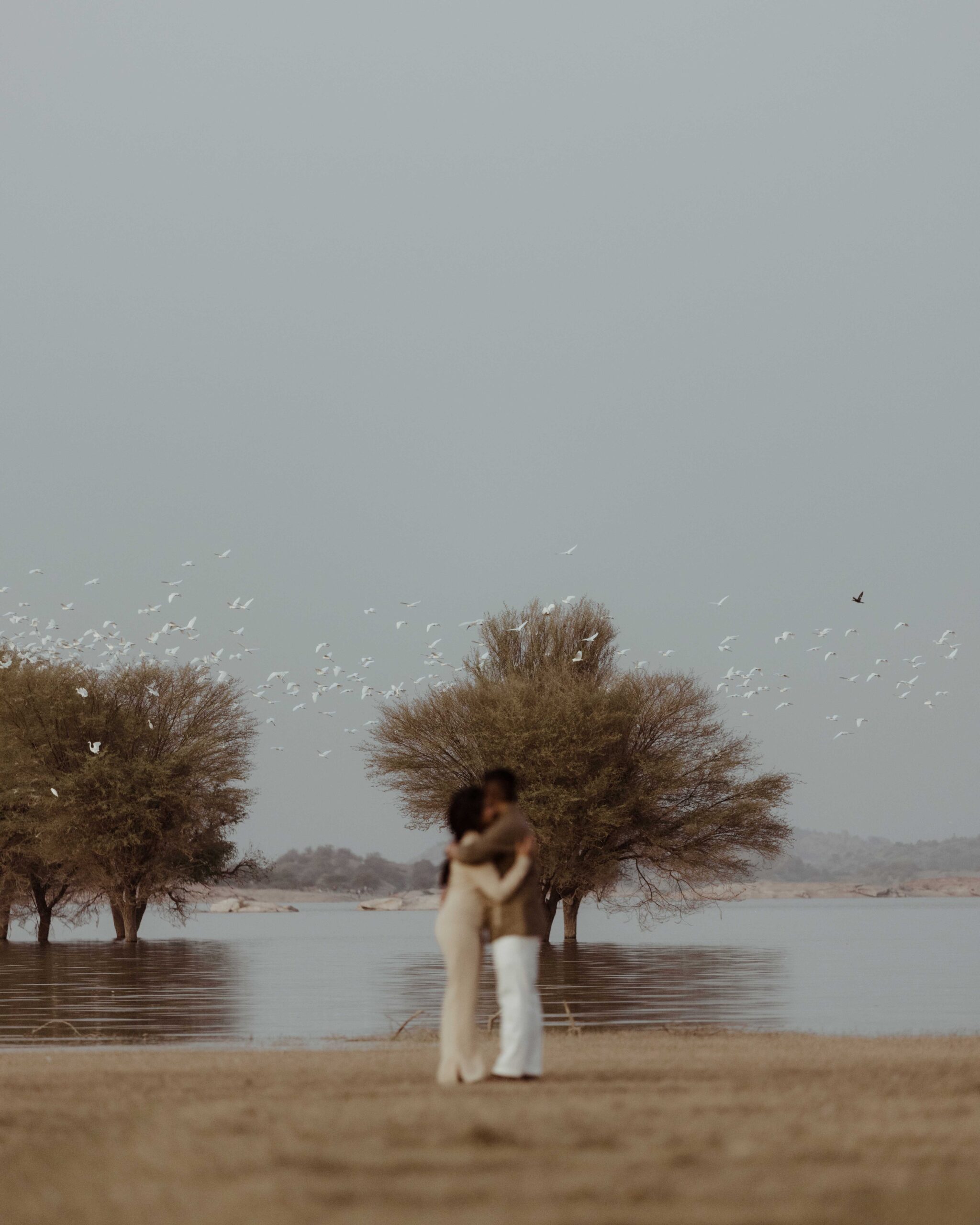 As Urmi once said, “Love for me is freedom, freedom of being yourself.” And that is exactly what we witnessed. There was no performance. No need to pretend. Their love breathed in sync with the wilderness around them, untamed, real, and deeply felt. Leopards passed like shadows, birds soared across a mirrored lake, and through it all, Kalrav and Urmi simply were. Together. Unbound. In a world that often wants to define love in grand gestures or heavy words, theirs was refreshingly quiet, found in long glances, shared stillness, and laughter that melted into the landscape. As the final light faded into a crimson sky, there was a warmth left behind, the kind that does not shout but lingers. The kind that reminds you love is not about holding tighter. It is about letting someone breathe, run, dream, and choosing to walk beside them anyway. In Jawai, surrounded by nature’s fierce beauty, Kalrav and Urmi lived that truth and we were lucky enough to witness it.
