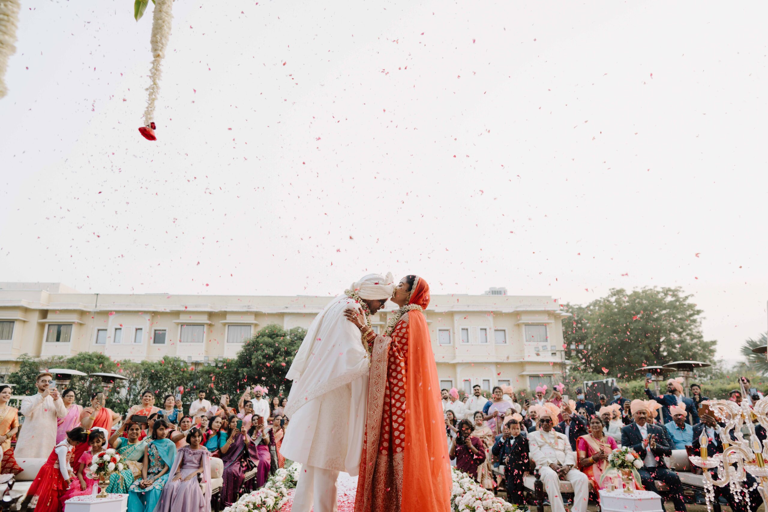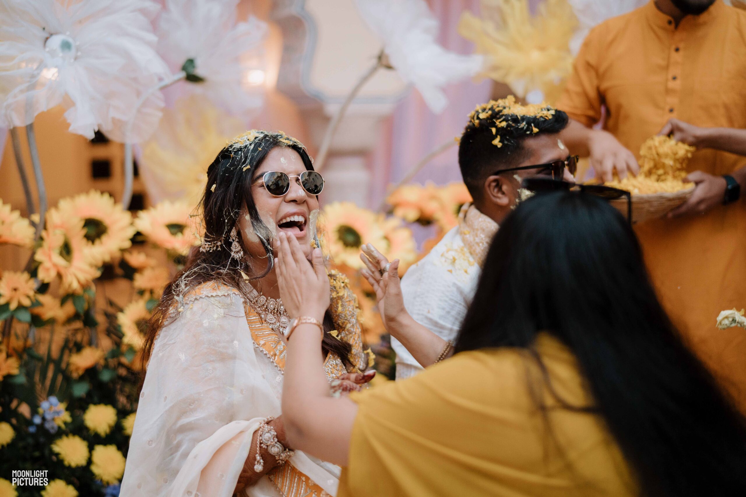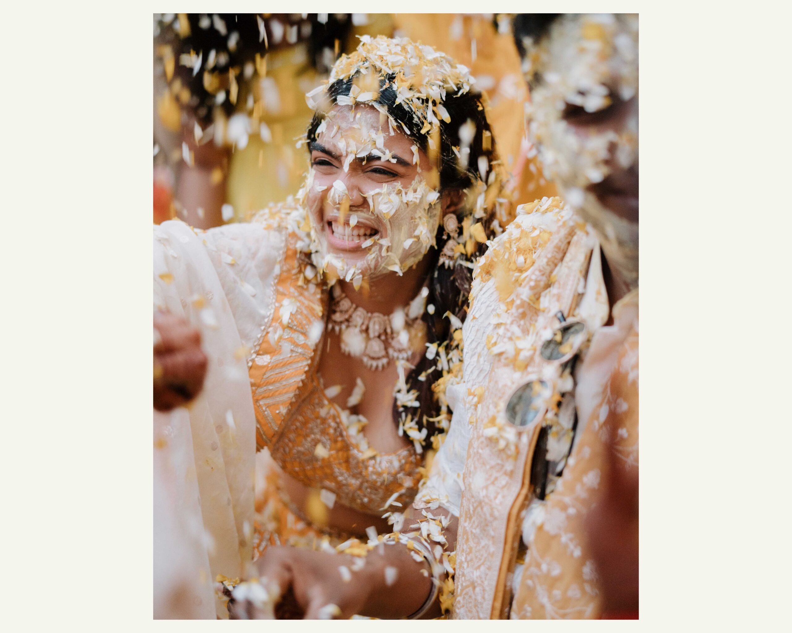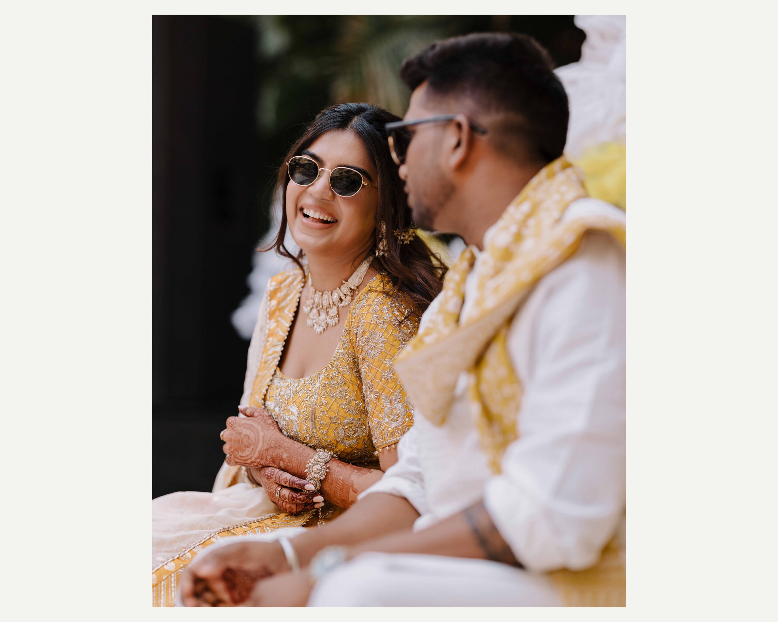 Rudrani and Sourav’s wedding was not just a celebration of rituals but a reflection of who they are as people. Soft-spoken yet expressive in all the ways that matter, their journey from being in love to becoming life partners unfolded with grace, sincerity, and an effortless charm that captured every heart. The festivities began with an intimate mehendi, where laughter filled the air as Rudrani’s hands were covered in delicate patterns symbolising moments and memories. She sat surrounded by those who love her most while Sourav stood close, occasionally stealing glances that held a lifetime of affection. Their sangeet was spirited and unfiltered, filled with the kind of joy that doesn’t need to be choreographed. It was less about perfect moves and more about celebrating a connection that felt honest. Then came the haldi ceremony, unlike any other. Instead of turmeric, yellow flower petals rained gently on them, creating a soft and magical aura that perfectly echoed their bond. They laughed, teased, and shared quiet smiles, fully present in a moment that felt less like tradition and more like a memory being etched in golden light.