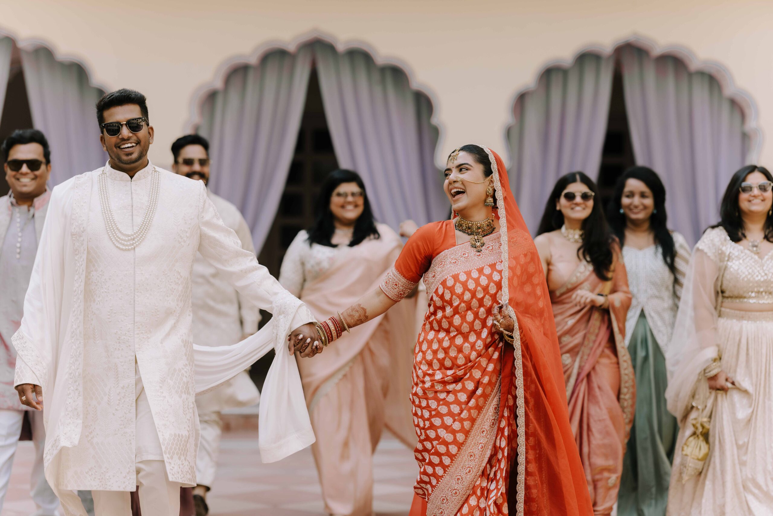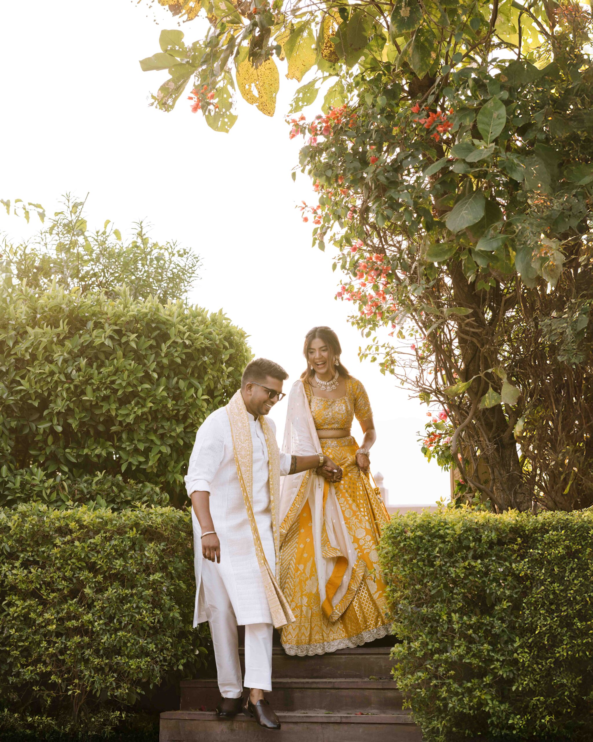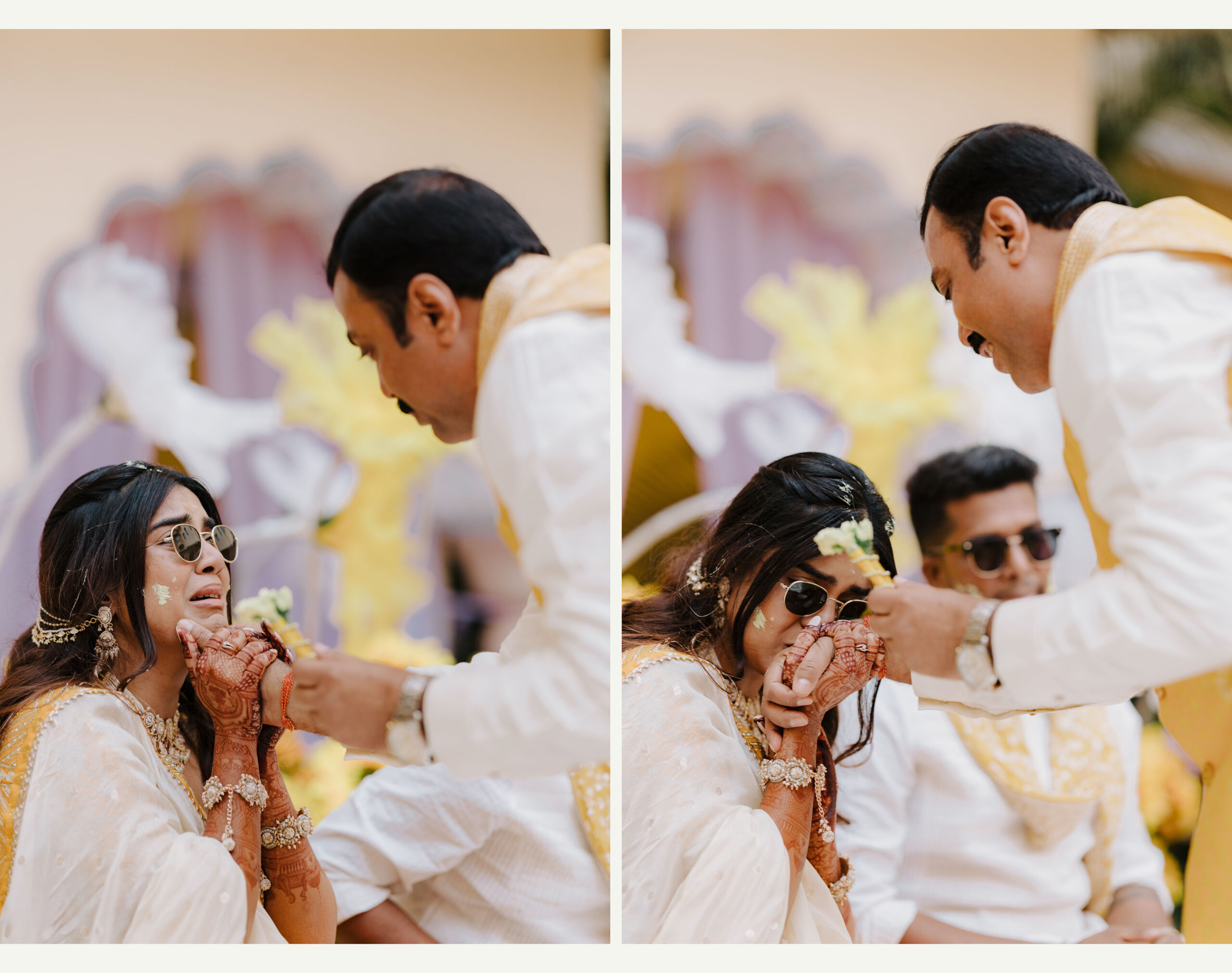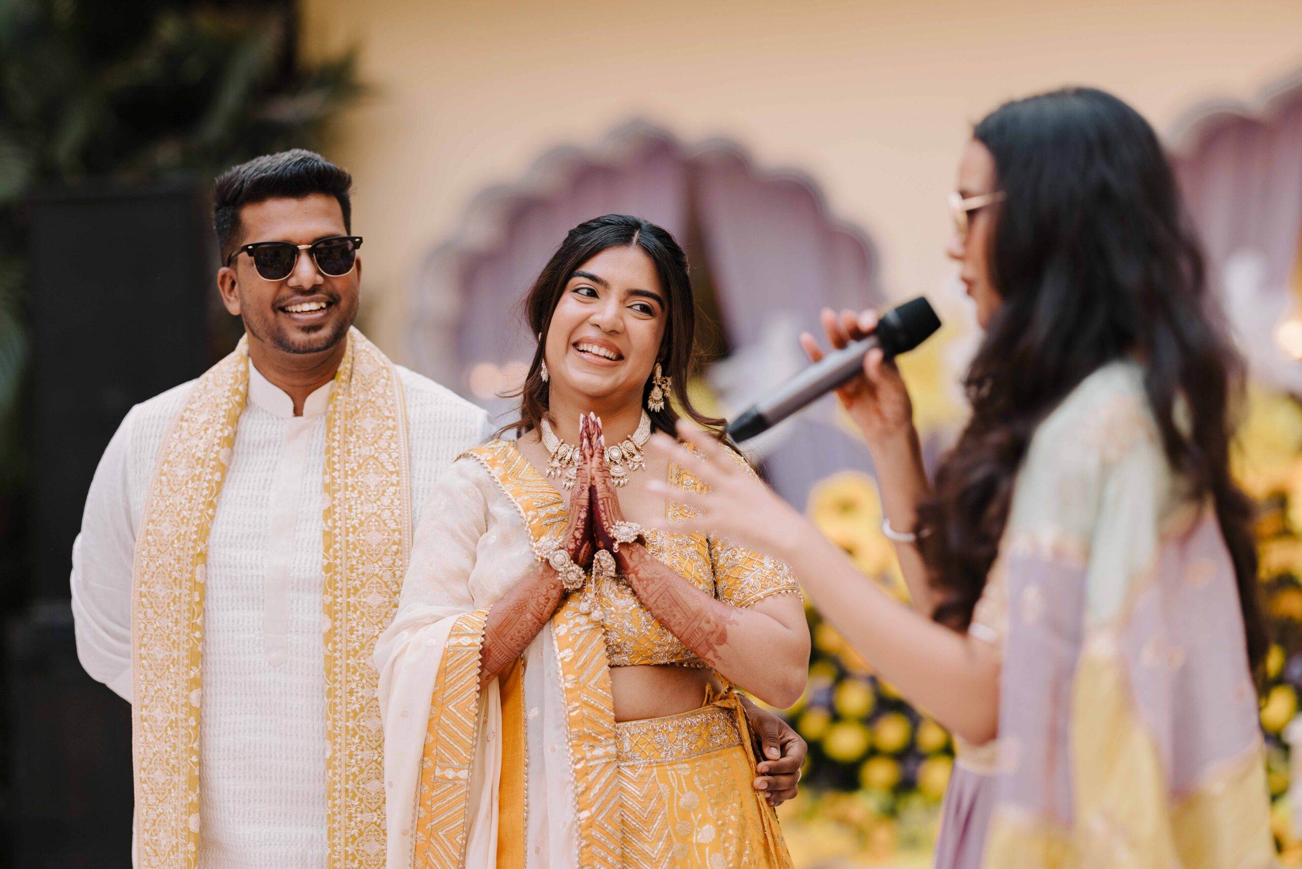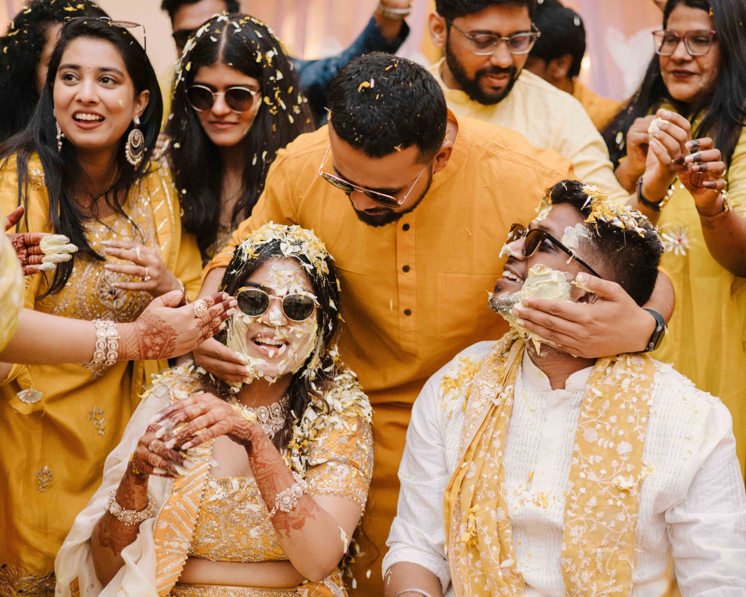 Rudrani and Sourav’s wedding was not just a celebration of rituals but a reflection of who they are as people. Soft-spoken yet expressive in all the ways that matter, their journey from being in love to becoming life partners unfolded with grace, sincerity, and an effortless charm that captured every heart. The festivities began with an intimate mehendi, where laughter filled the air as Rudrani’s hands were covered in delicate patterns symbolising moments and memories. She sat surrounded by those who love her most while Sourav stood close, occasionally stealing glances that held a lifetime of affection. Their sangeet was spirited and unfiltered, filled with the kind of joy that doesn’t need to be choreographed. It was less about perfect moves and more about celebrating a connection that felt honest. Then came the haldi ceremony, unlike any other. Instead of turmeric, yellow flower petals rained gently on them, creating a soft and magical aura that perfectly echoed their bond. They laughed, teased, and shared quiet smiles, fully present in a moment that felt less like tradition and more like a memory being etched in golden light.