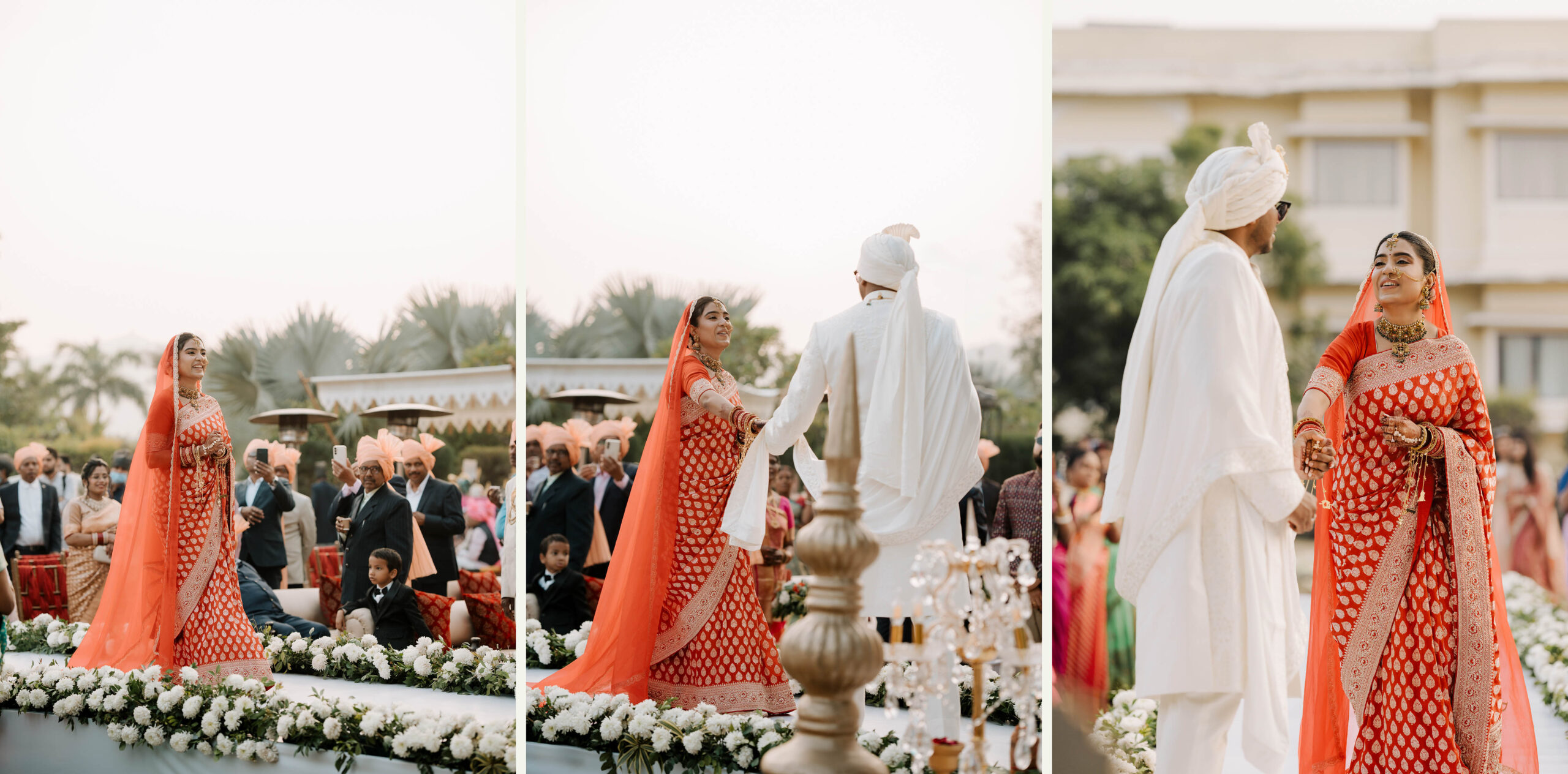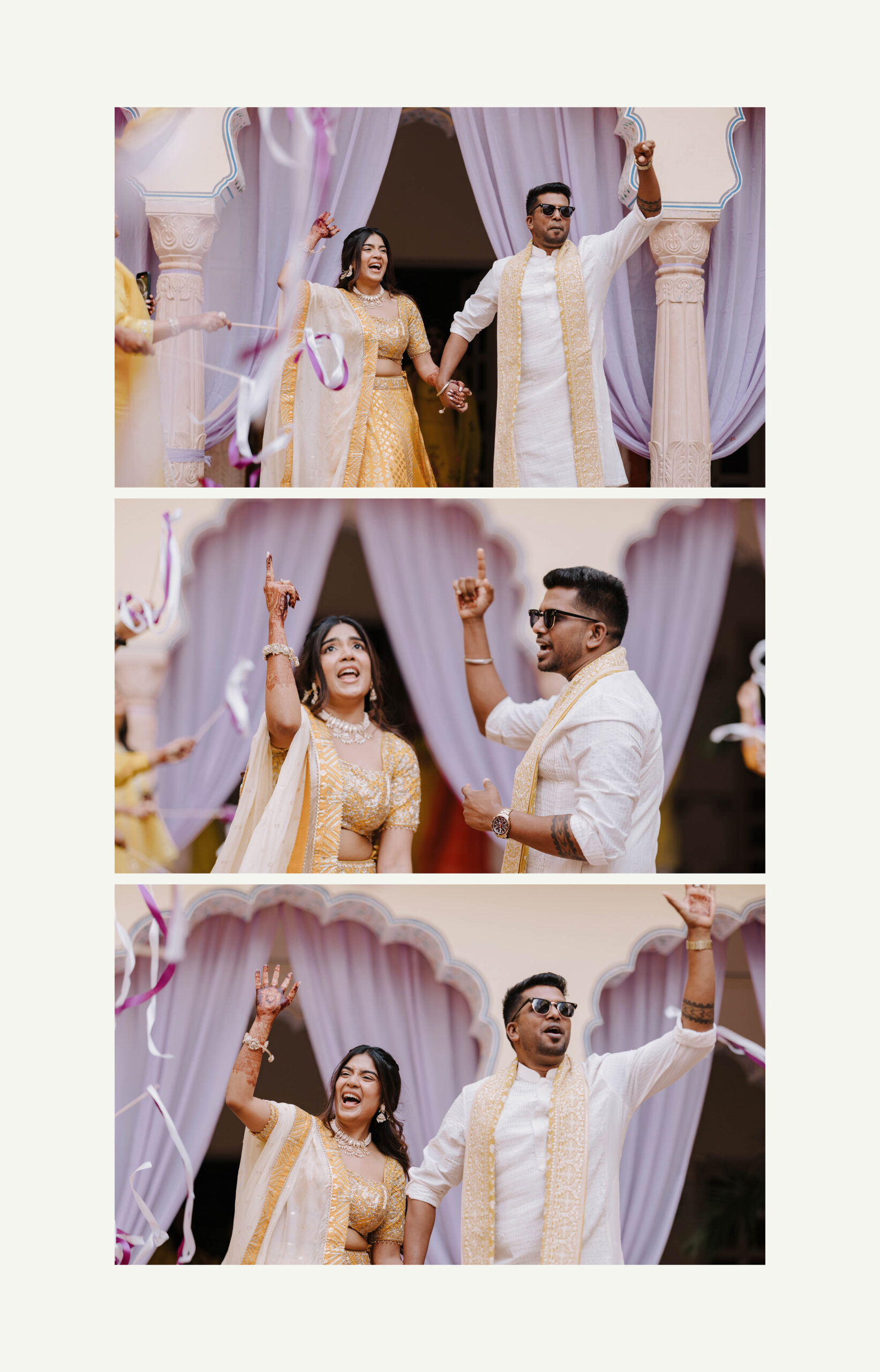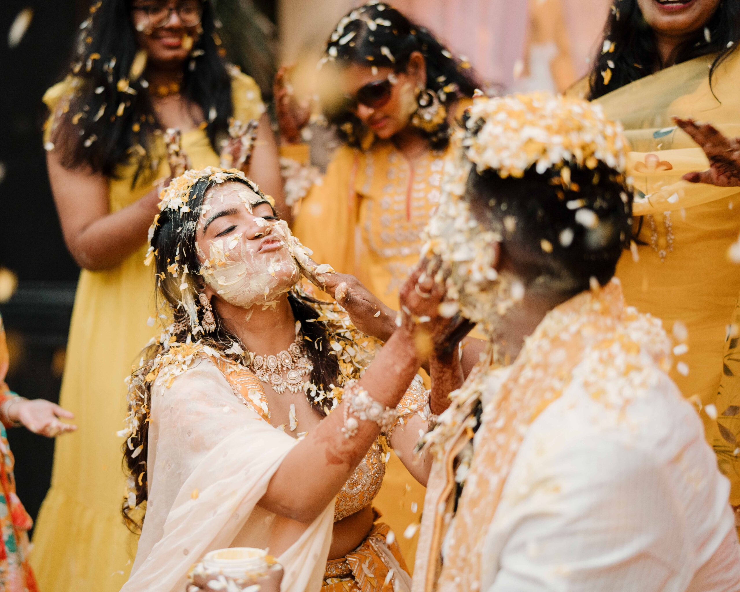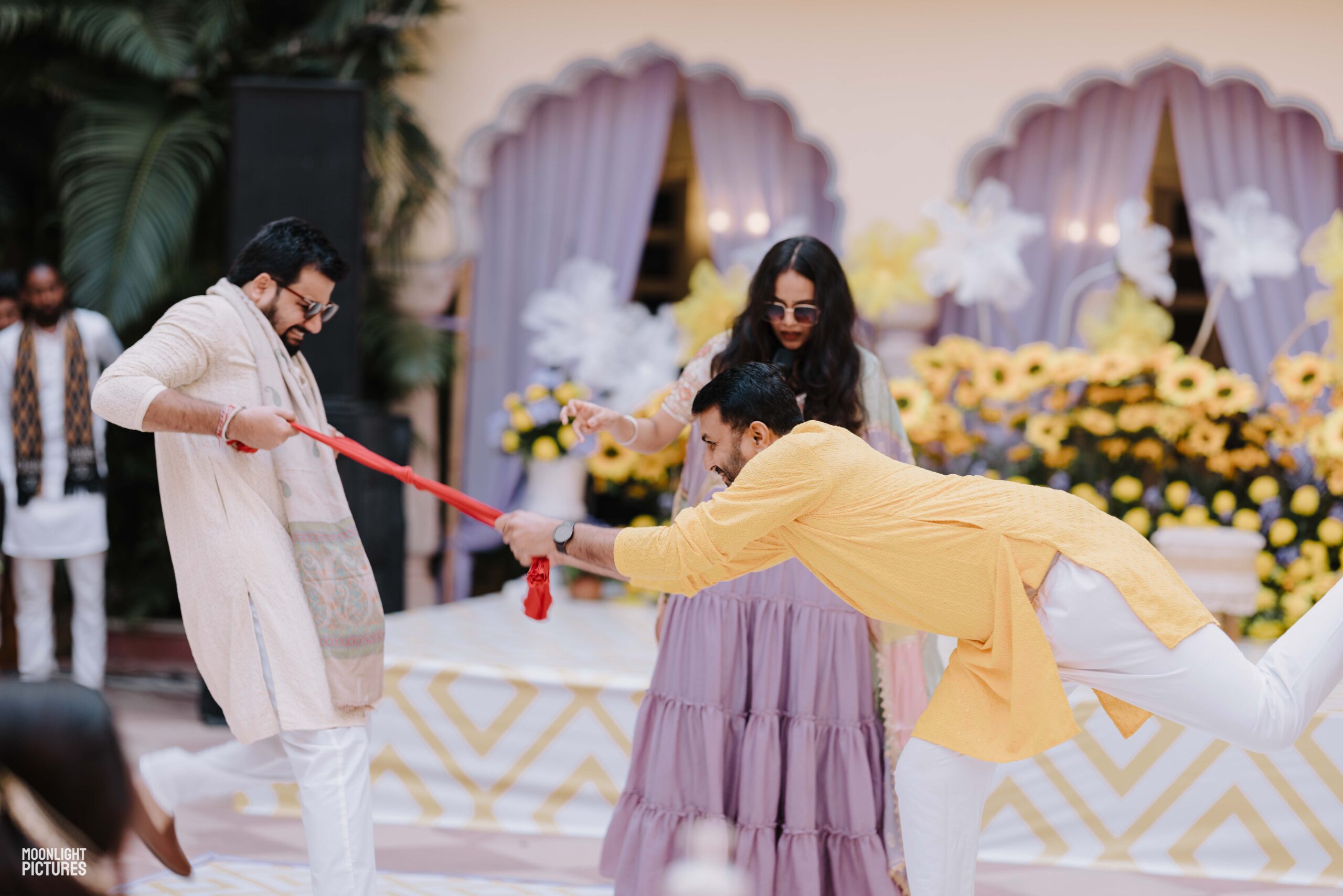 Rudrani and Sourav’s wedding was not just a celebration of rituals but a reflection of who they are as people. Soft-spoken yet expressive in all the ways that matter, their journey from being in love to becoming life partners unfolded with grace, sincerity, and an effortless charm that captured every heart. The festivities began with an intimate mehendi, where laughter filled the air as Rudrani’s hands were covered in delicate patterns symbolising moments and memories. She sat surrounded by those who love her most while Sourav stood close, occasionally stealing glances that held a lifetime of affection. Their sangeet was spirited and unfiltered, filled with the kind of joy that doesn’t need to be choreographed. It was less about perfect moves and more about celebrating a connection that felt honest. Then came the haldi ceremony, unlike any other. Instead of turmeric, yellow flower petals rained gently on them, creating a soft and magical aura that perfectly echoed their bond. They laughed, teased, and shared quiet smiles, fully present in a moment that felt less like tradition and more like a memory being etched in golden light.
