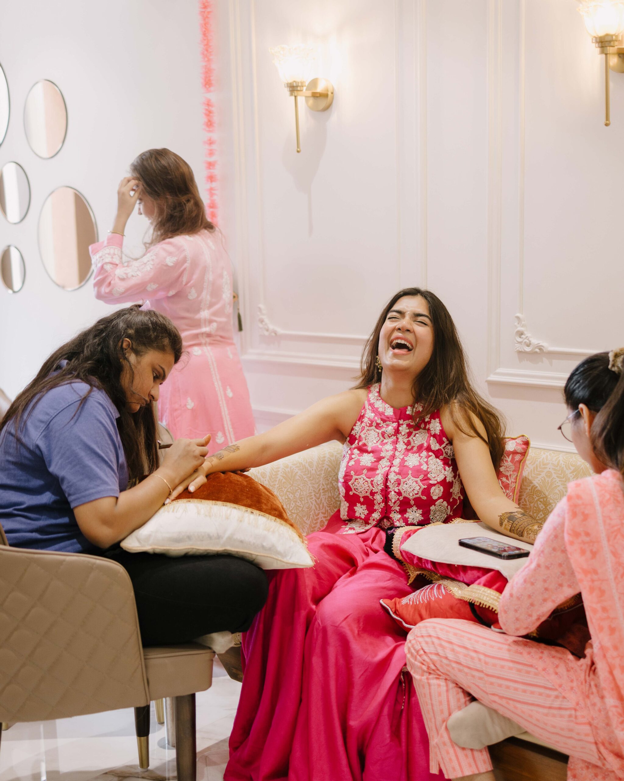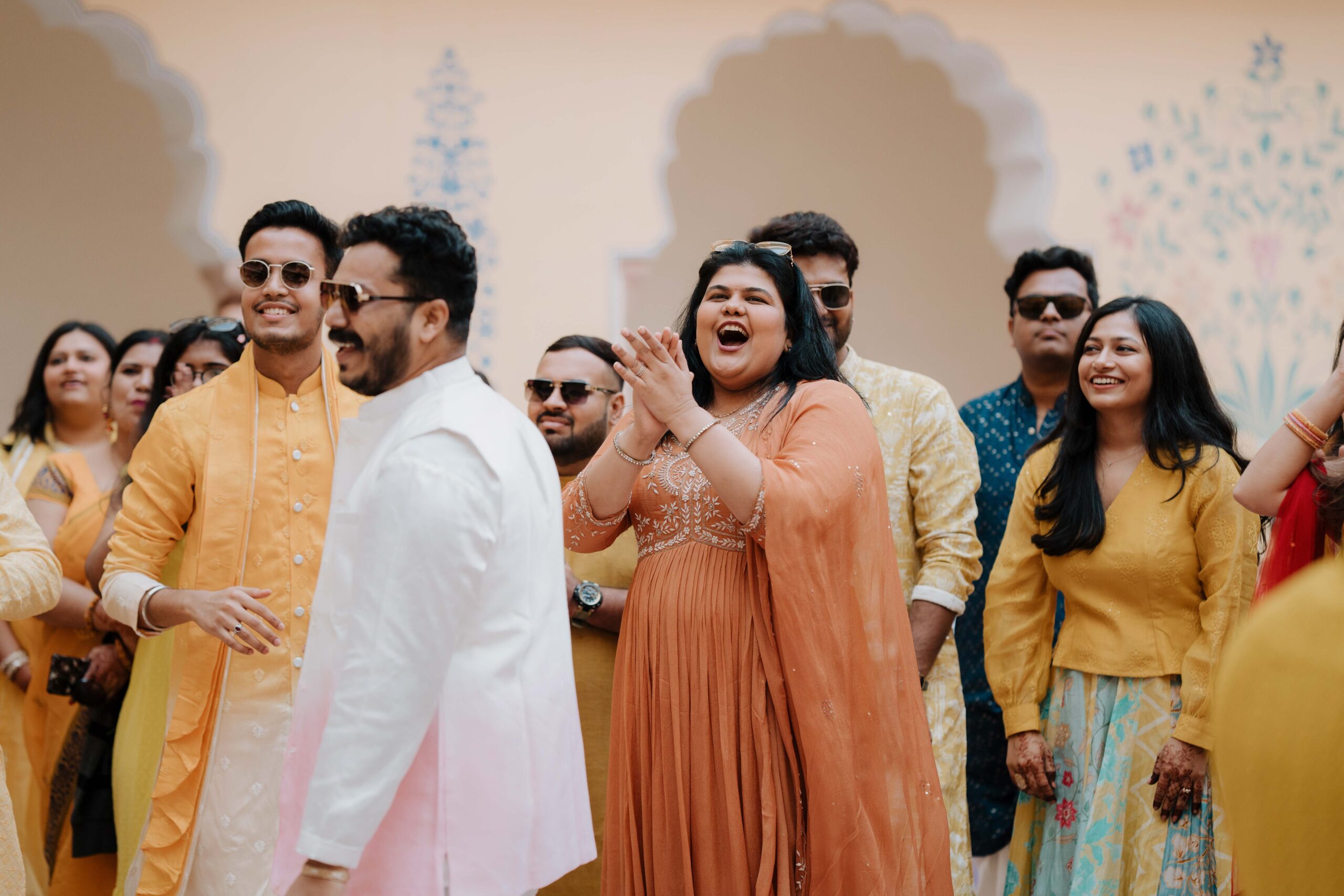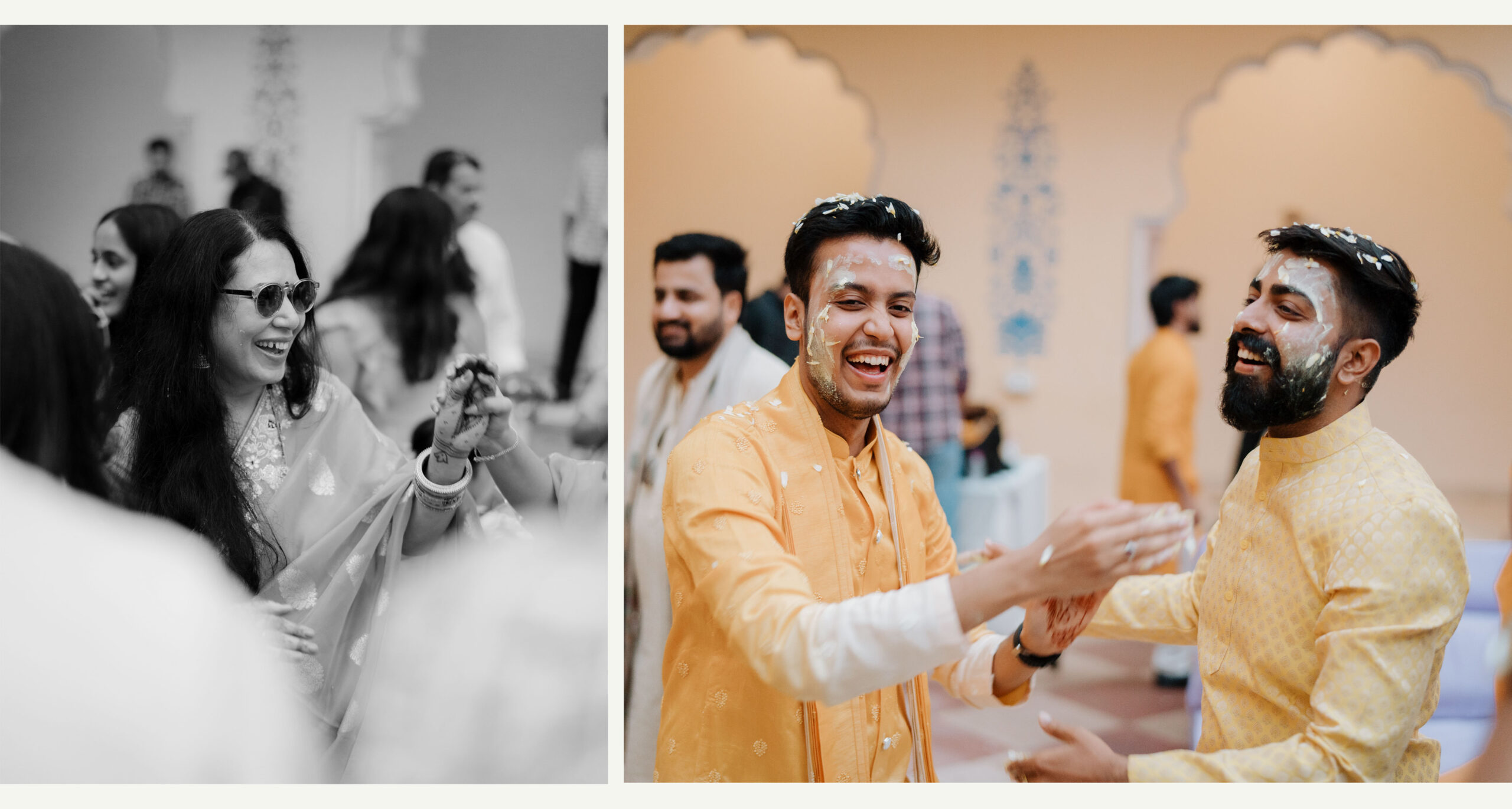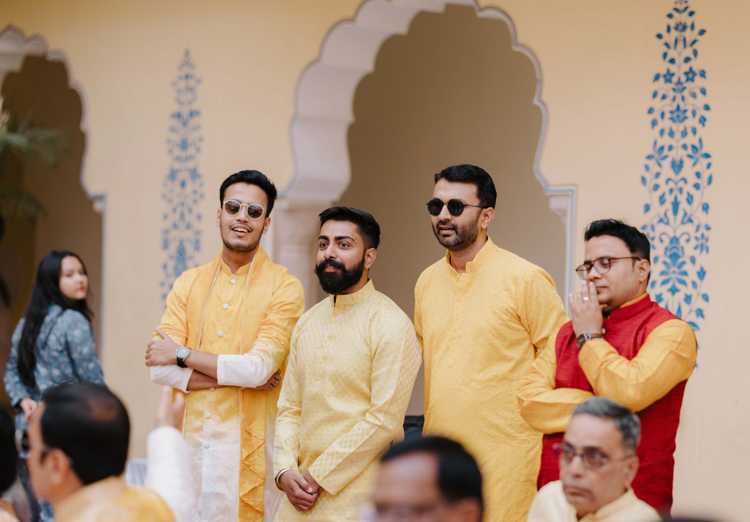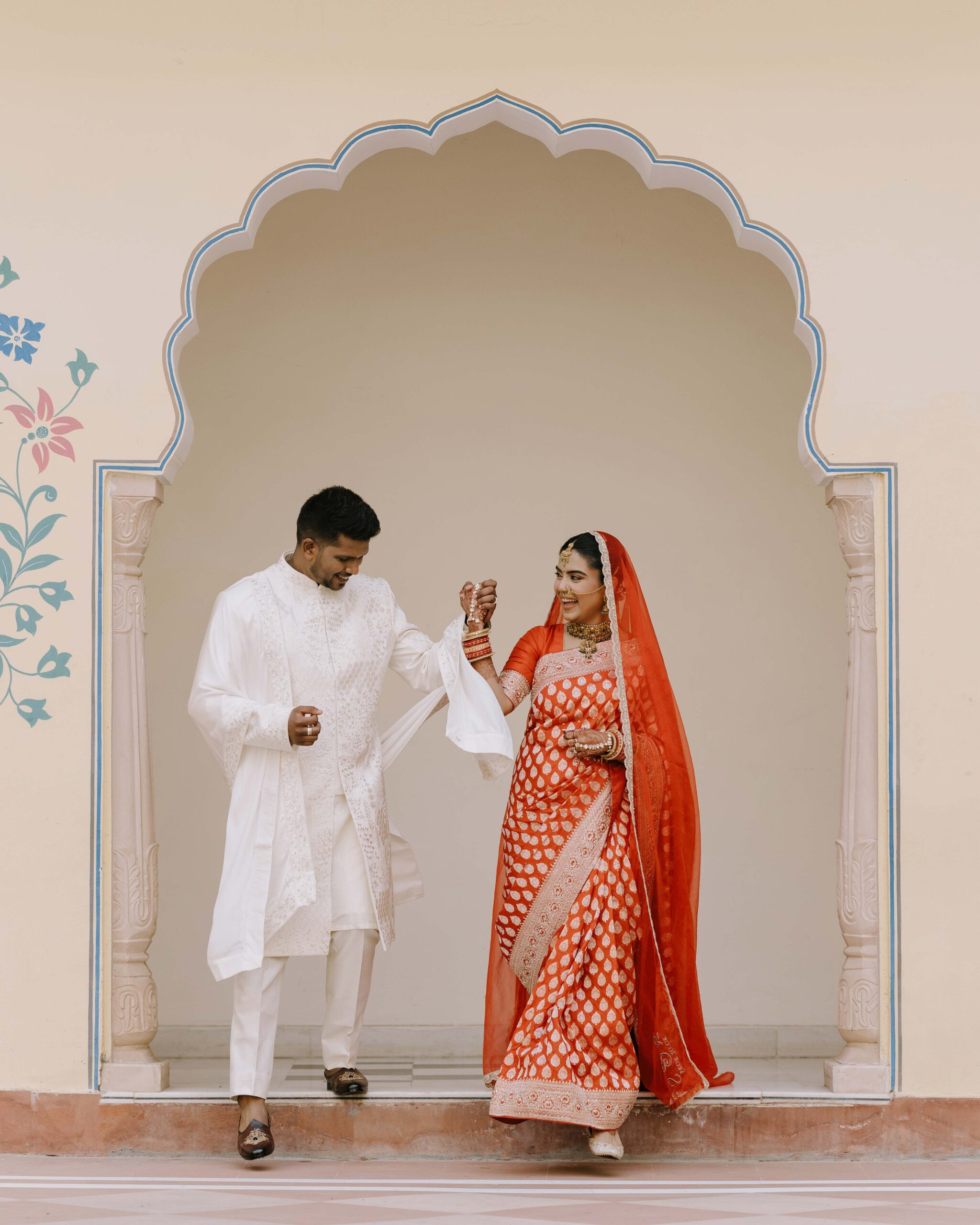 Rudrani and Sourav’s wedding was not just a celebration of rituals but a reflection of who they are as people. Soft-spoken yet expressive in all the ways that matter, their journey from being in love to becoming life partners unfolded with grace, sincerity, and an effortless charm that captured every heart. The festivities began with an intimate mehendi, where laughter filled the air as Rudrani’s hands were covered in delicate patterns symbolising moments and memories. She sat surrounded by those who love her most while Sourav stood close, occasionally stealing glances that held a lifetime of affection. Their sangeet was spirited and unfiltered, filled with the kind of joy that doesn’t need to be choreographed. It was less about perfect moves and more about celebrating a connection that felt honest. Then came the haldi ceremony, unlike any other. Instead of turmeric, yellow flower petals rained gently on them, creating a soft and magical aura that perfectly echoed their bond. They laughed, teased, and shared quiet smiles, fully present in a moment that felt less like tradition and more like a memory being etched in golden light.