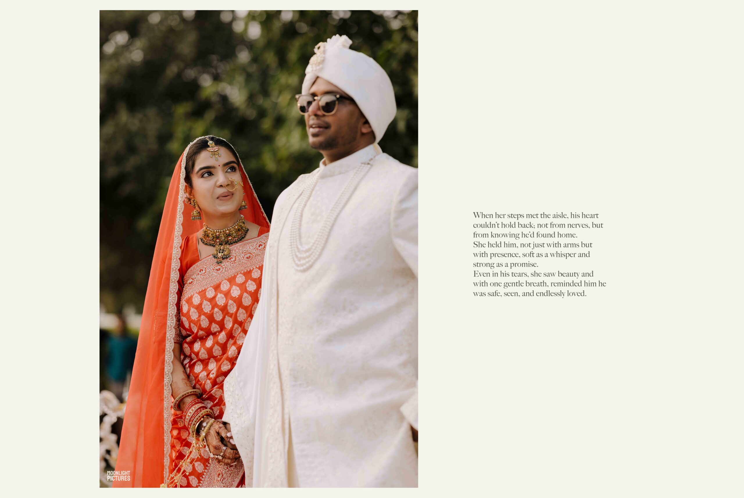 The wedding day itself arrived with calm anticipation. Rudrani walked towards Sourav with steady steps, her eyes locked on his with a mix of comfort and promise. There was no rush, no overwhelming theatrics, only the quiet rhythm of two people stepping into forever. Their ceremony was heartfelt and beautifully understated, and those present could feel the sincerity in the silence between them. The reception followed as a graceful close to their story. Rudrani glowed with timeless elegance, and Sourav never let go of her hand for more than a moment. Together they moved through the evening with poise, sharing smiles with everyone, yet constantly retreating into their own little world. Their love didn’t demand attention, it simply existed with quiet strength and unwavering warmth. In every ceremony, every glance, and every silence, Rudrani and Sourav showed what real companionship looks like. Theirs is a love that is deeply rooted yet endlessly gentle, something that cannot be performed but only lived. Their wedding was not about trends or timelines; it was about two souls choosing each other fully, joyfully, and without hesitation.