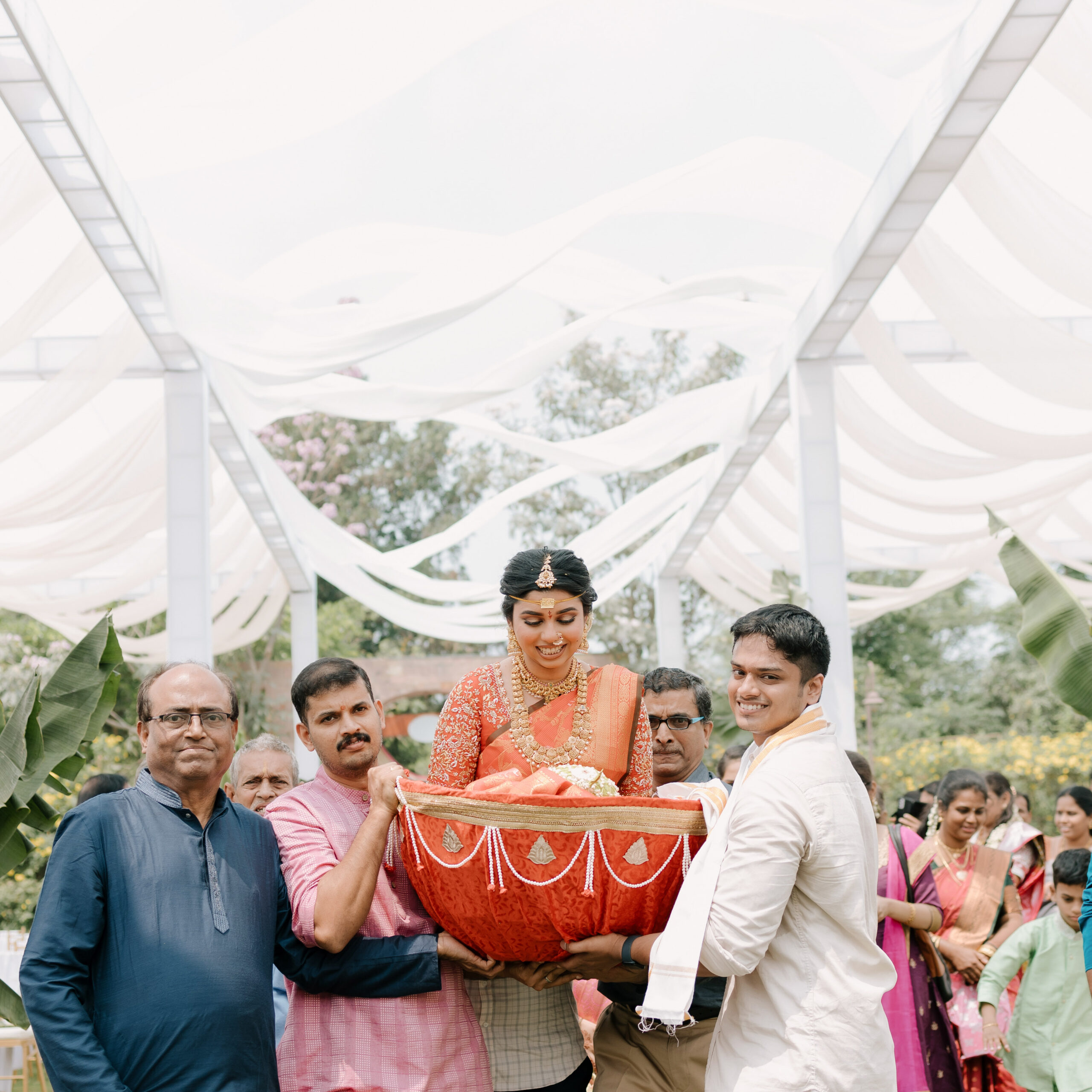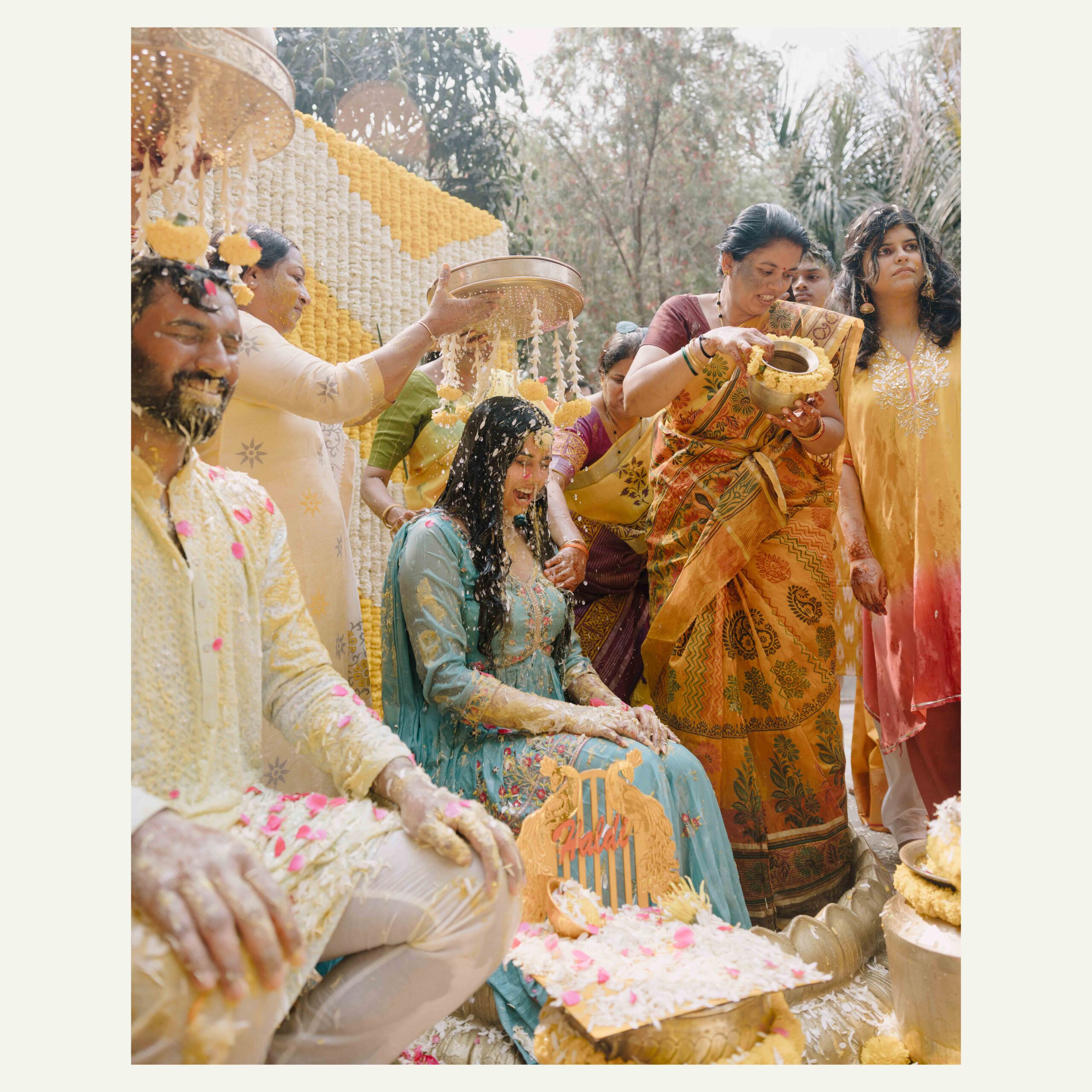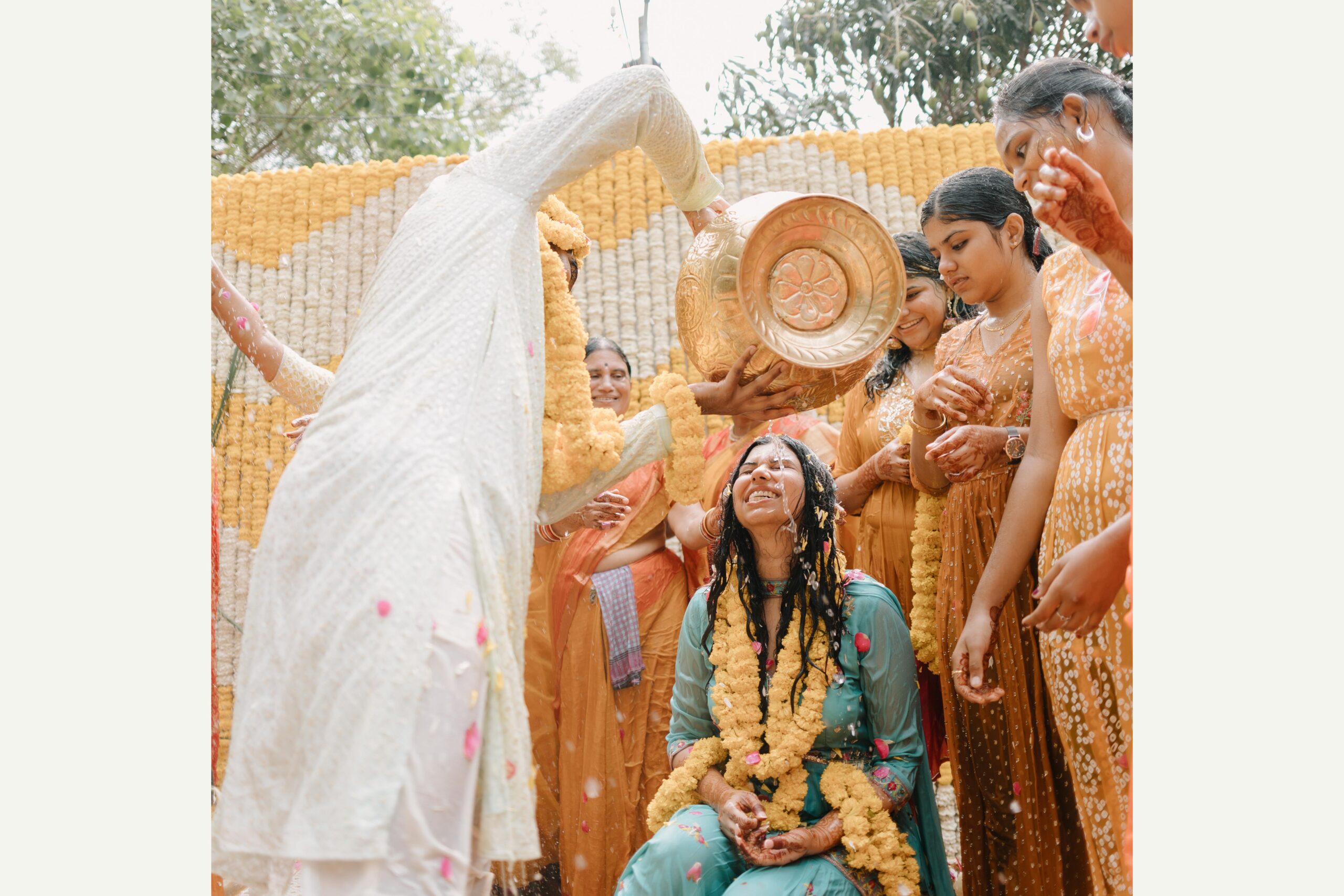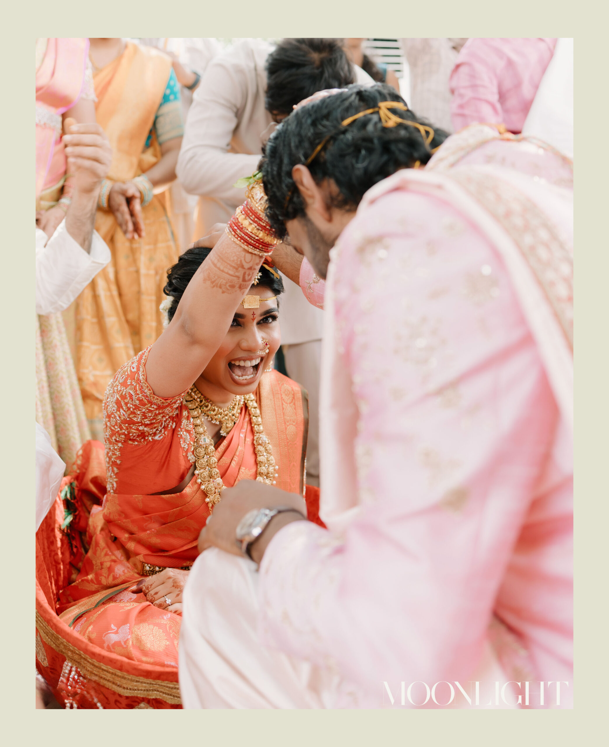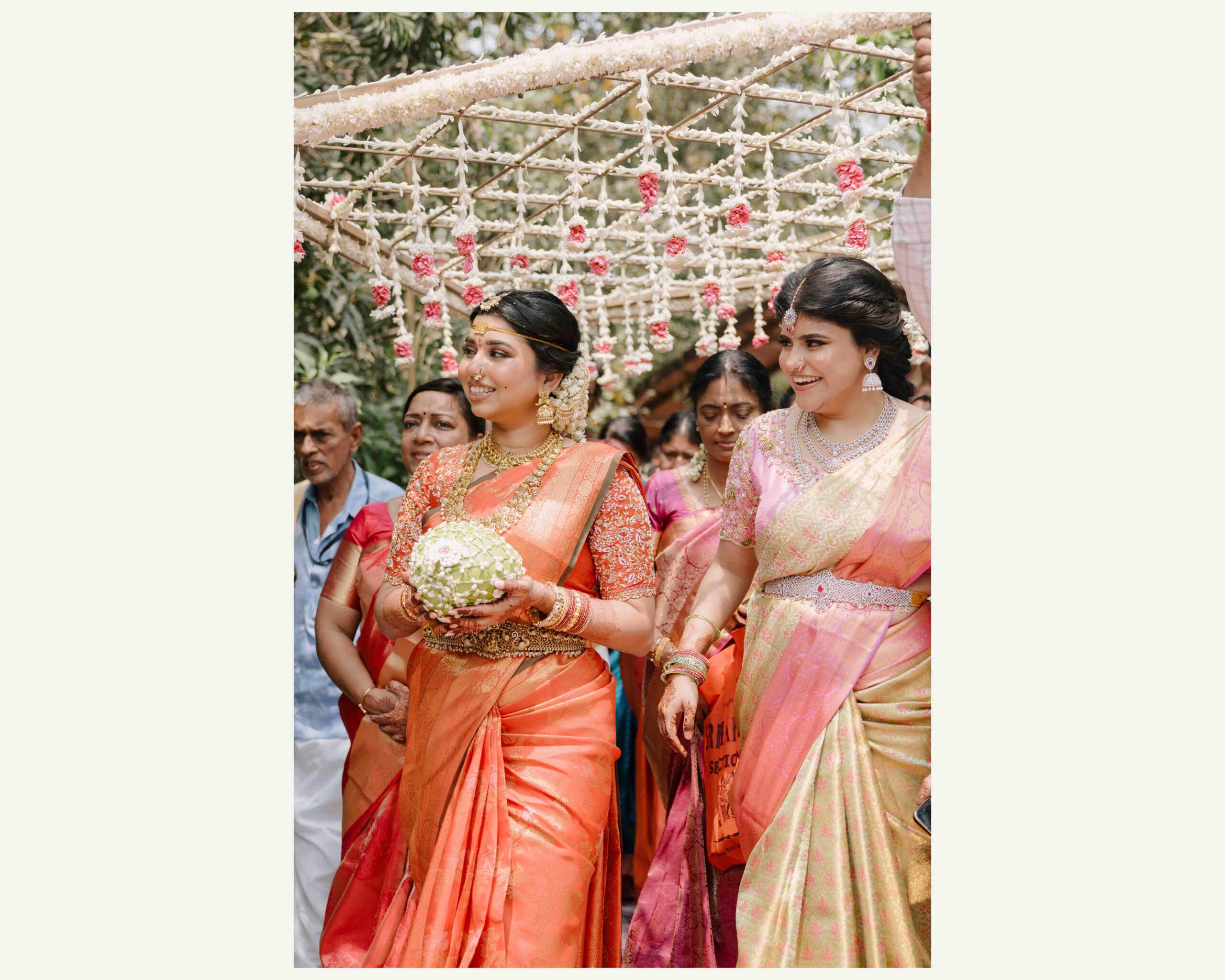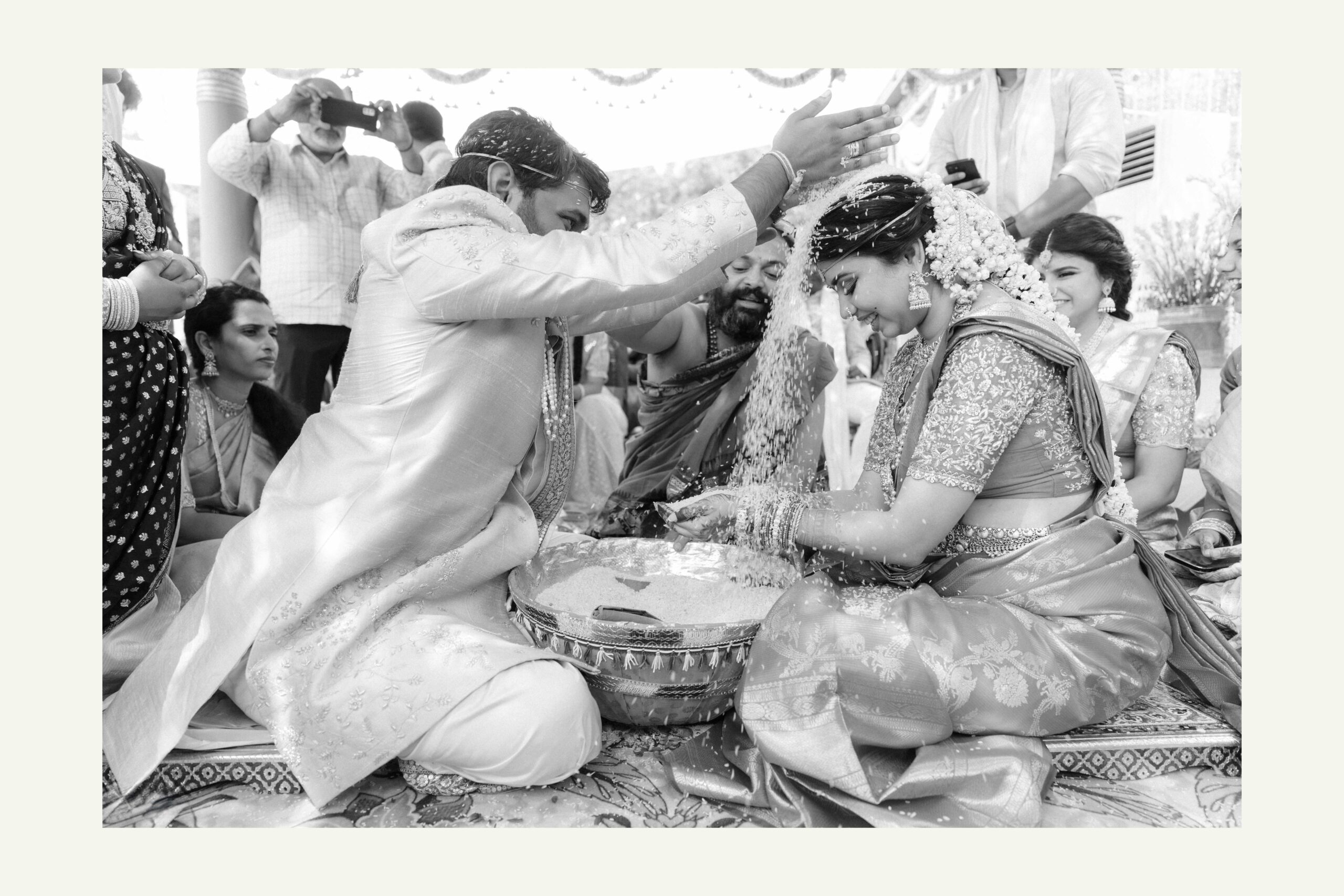 Tejasree and Rithwik are not just two people in love. They are two wild-hearted souls who found in each other a quiet refuge and an untamed adventure. Watching them get married felt like watching the universe fold in on itself with intention, placing two distinct energies side by side in a way that just made sense. Their South Indian wedding carried a warmth that went beyond rituals and ceremonies. It pulsed through the temple bells, echoed in the laughter of their closest friends, and shimmered through the earthy tones of turmeric and silk. There was nothing overdone, nothing performative. Just two imperfect species who fit together with such rare clarity that even silence between them felt like conversation. In the middle of all the color, rhythm, and prayer, they stood calm and certain, like the moment before monsoon rain touches the hills, like something sacred unfolding without effort.