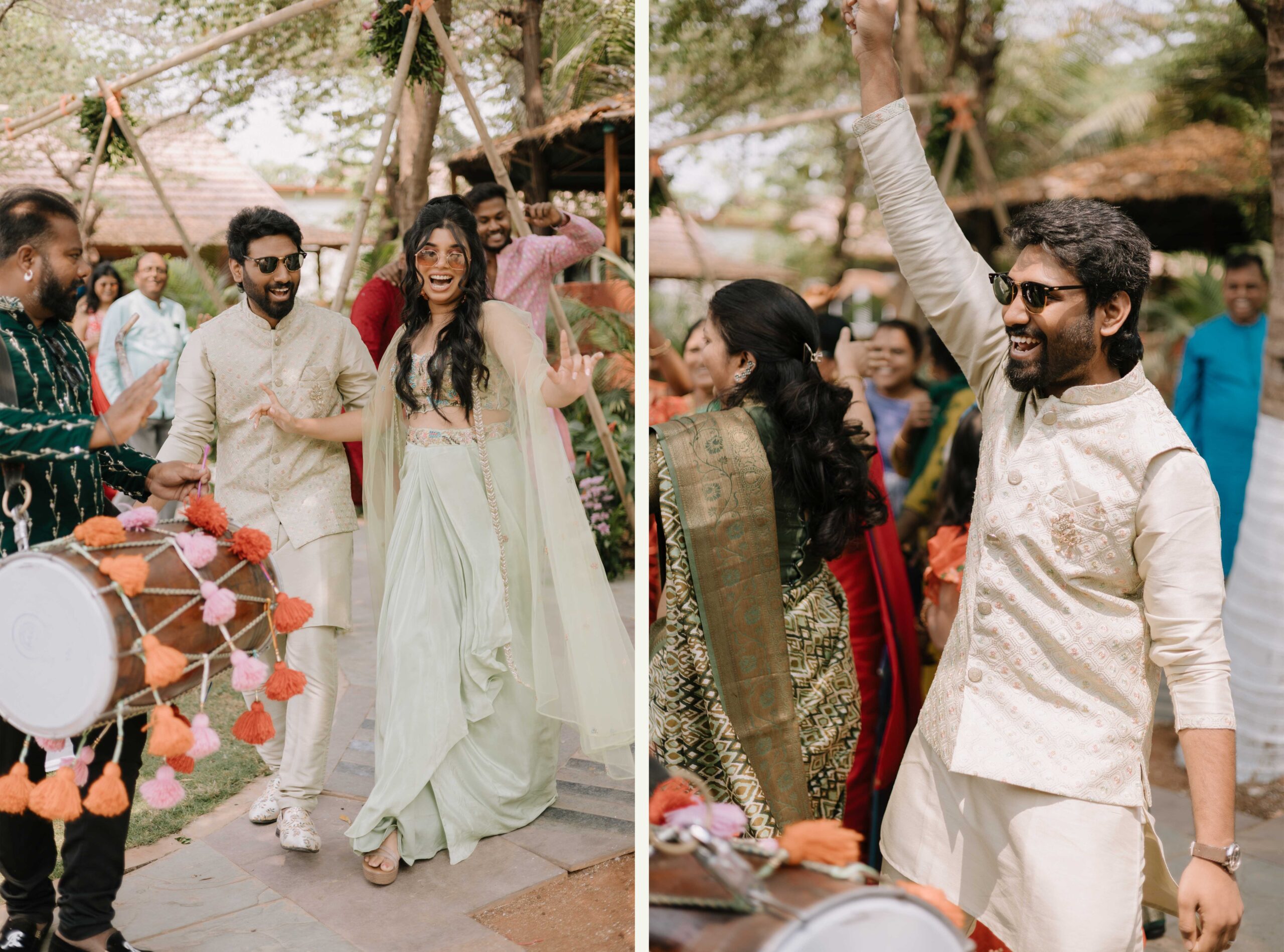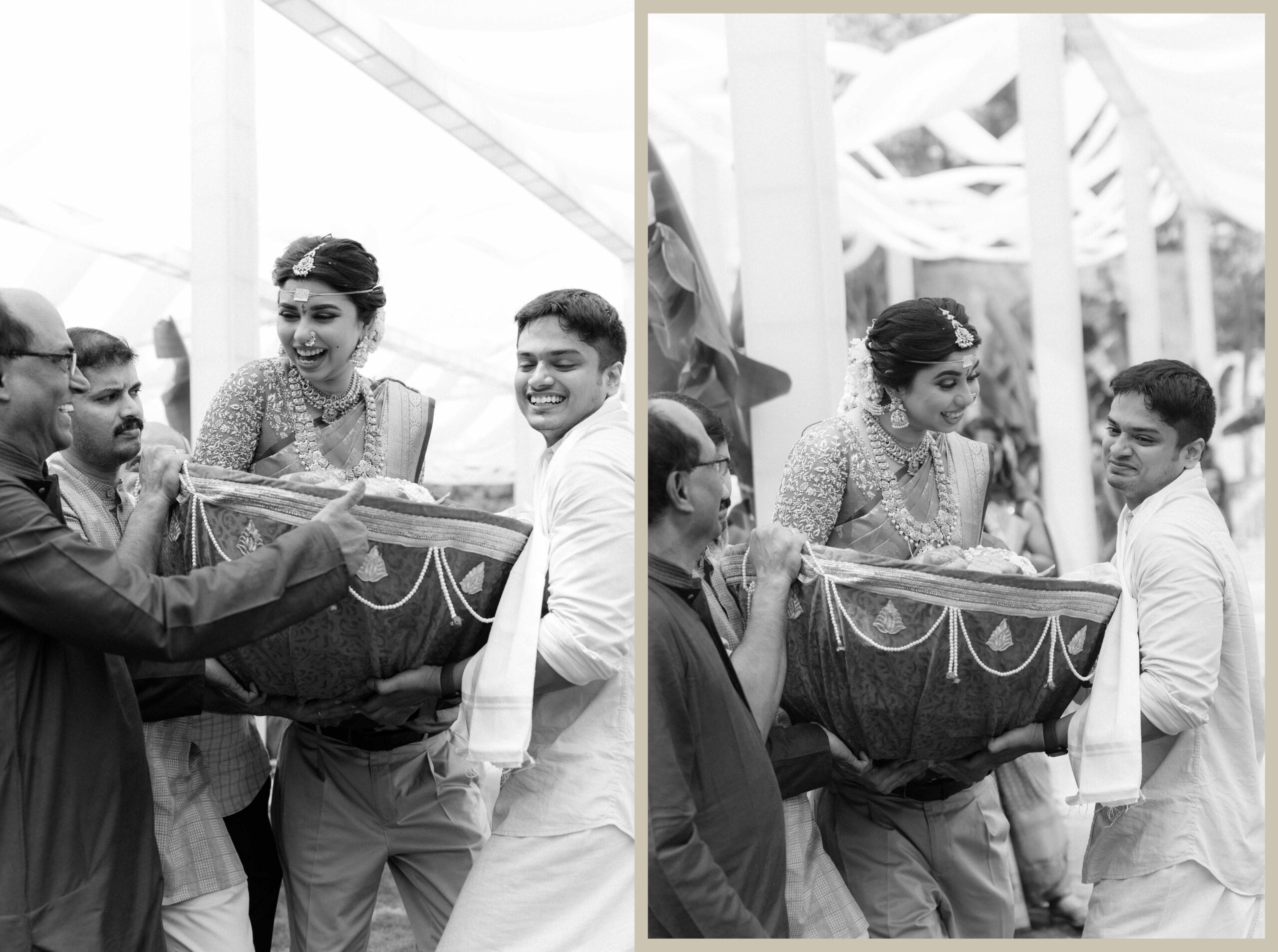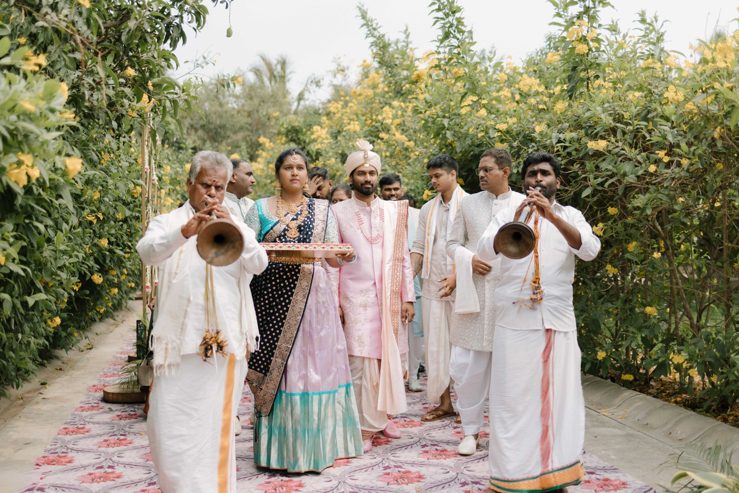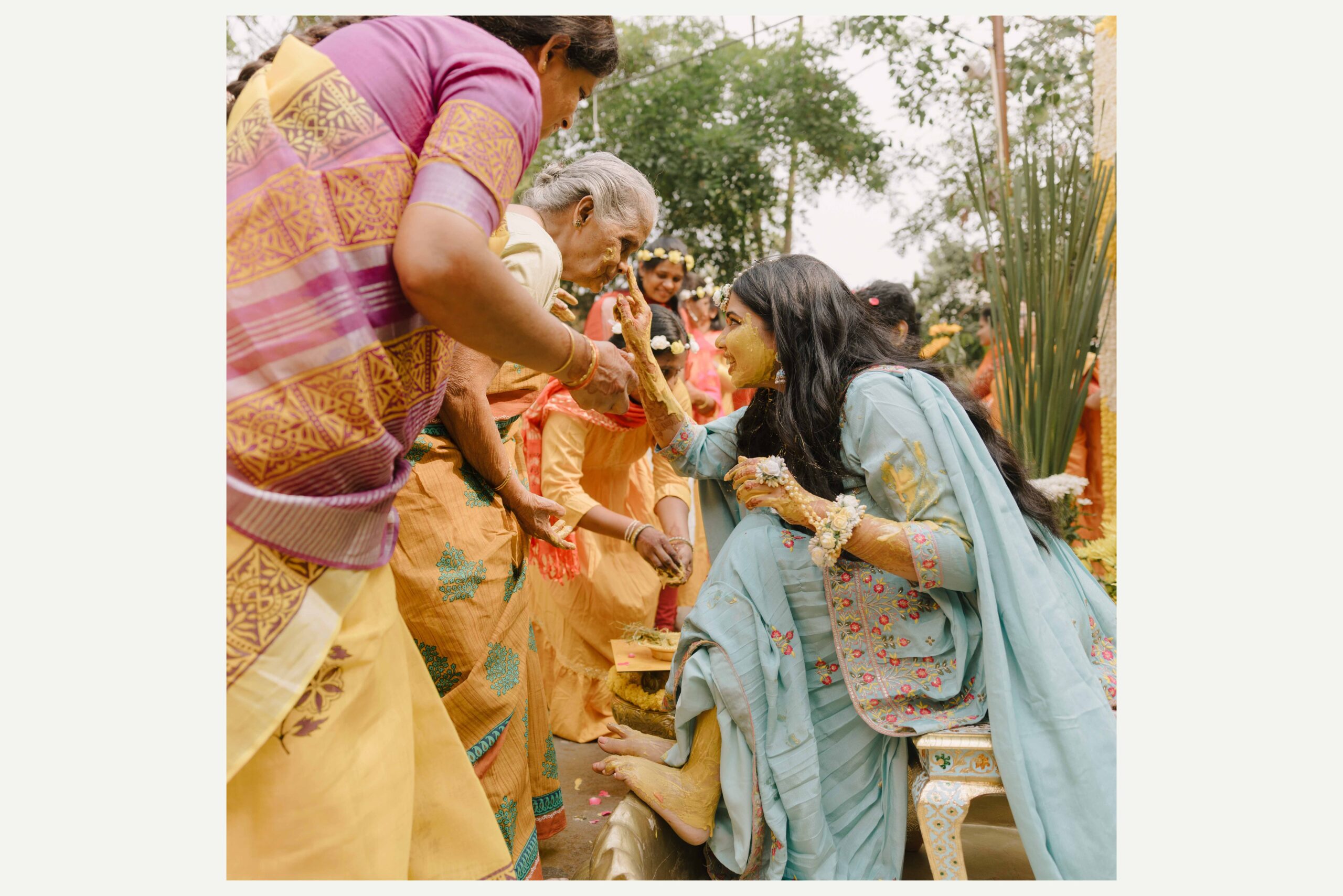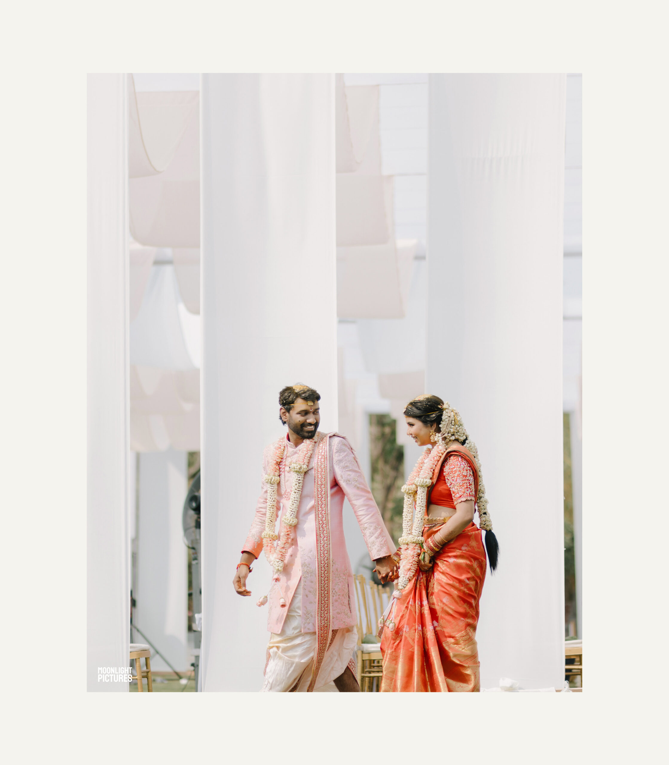 Tejasree and Rithwik are not just two people in love. They are two wild-hearted souls who found in each other a quiet refuge and an untamed adventure. Watching them get married felt like watching the universe fold in on itself with intention, placing two distinct energies side by side in a way that just made sense. Their South Indian wedding carried a warmth that went beyond rituals and ceremonies. It pulsed through the temple bells, echoed in the laughter of their closest friends, and shimmered through the earthy tones of turmeric and silk. There was nothing overdone, nothing performative. Just two imperfect species who fit together with such rare clarity that even silence between them felt like conversation. In the middle of all the color, rhythm, and prayer, they stood calm and certain, like the moment before monsoon rain touches the hills, like something sacred unfolding without effort.