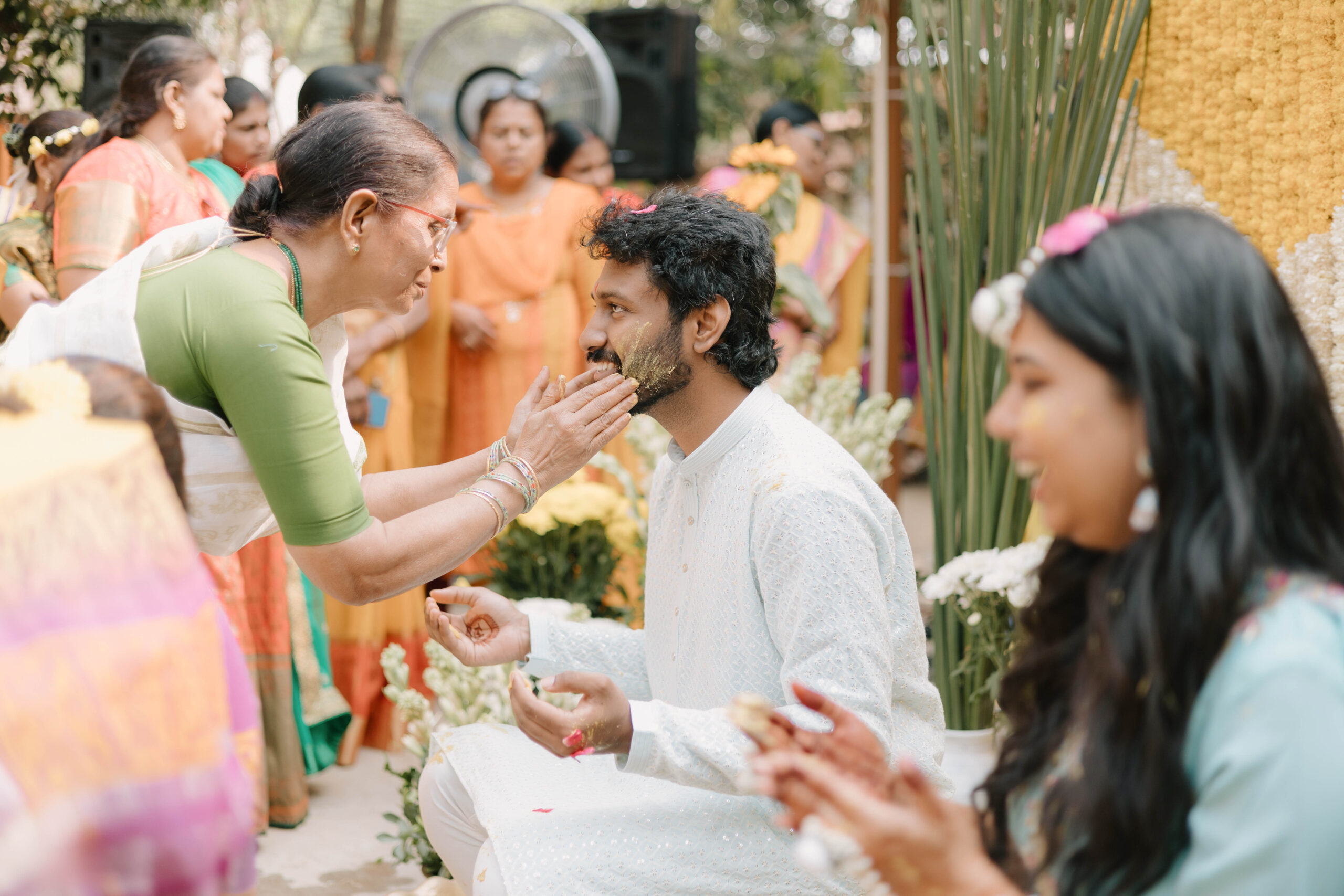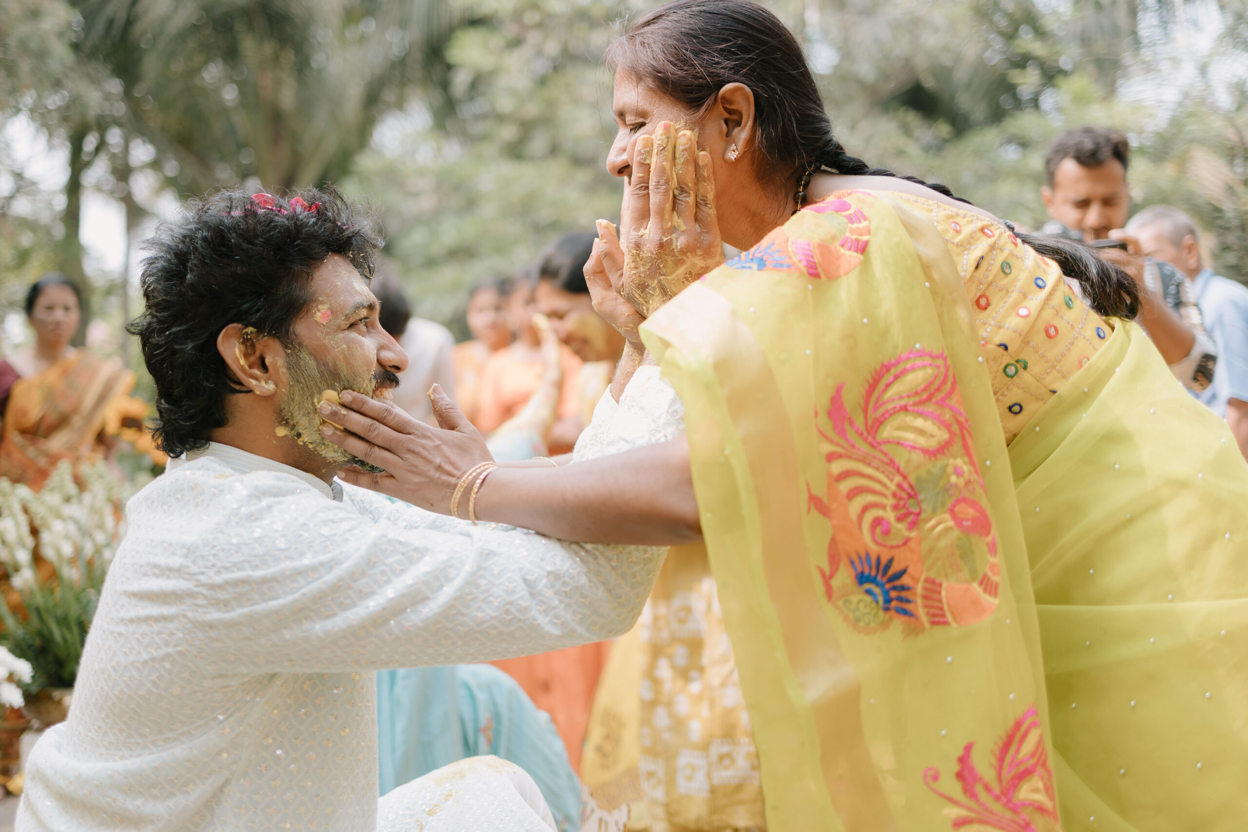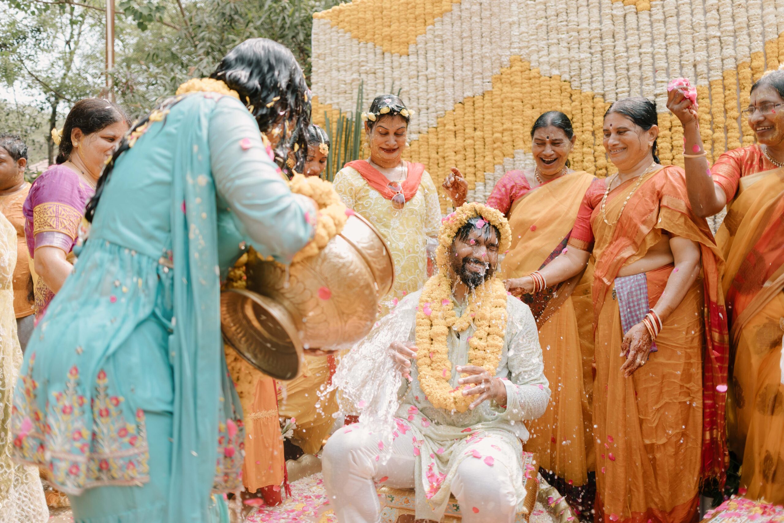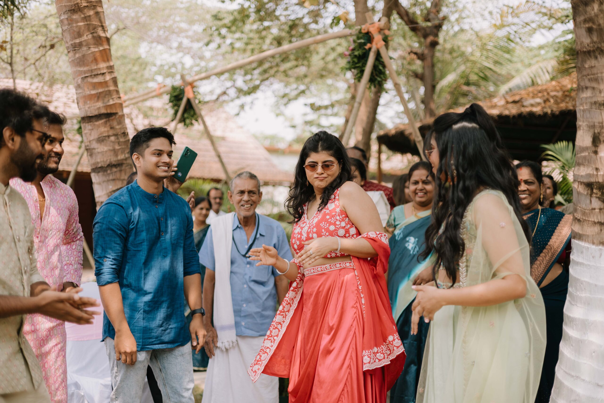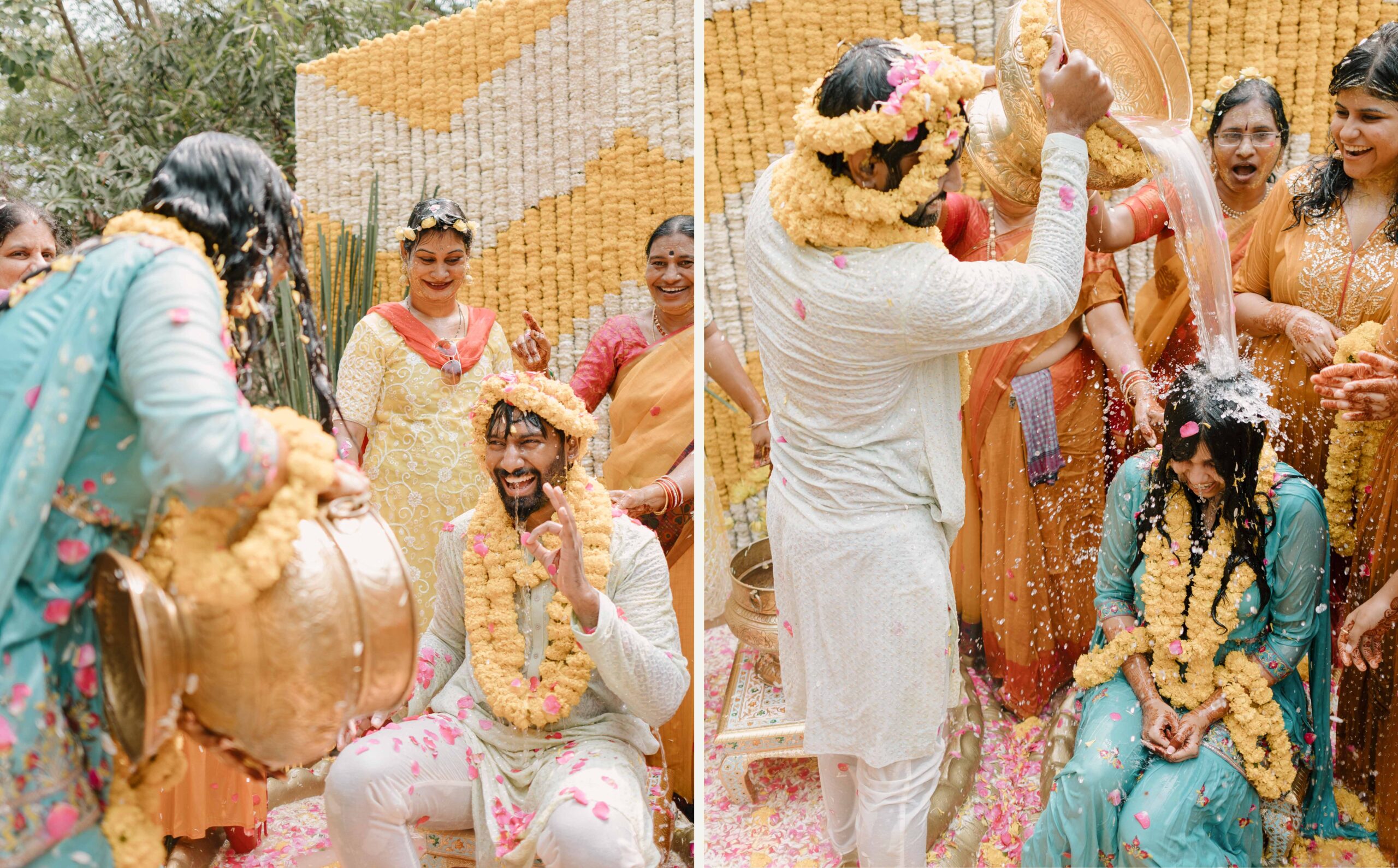 Tejasree and Rithwik are not just two people in love. They are two wild-hearted souls who found in each other a quiet refuge and an untamed adventure. Watching them get married felt like watching the universe fold in on itself with intention, placing two distinct energies side by side in a way that just made sense. Their South Indian wedding carried a warmth that went beyond rituals and ceremonies. It pulsed through the temple bells, echoed in the laughter of their closest friends, and shimmered through the earthy tones of turmeric and silk. There was nothing overdone, nothing performative. Just two imperfect species who fit together with such rare clarity that even silence between them felt like conversation. In the middle of all the color, rhythm, and prayer, they stood calm and certain, like the moment before monsoon rain touches the hills, like something sacred unfolding without effort.
